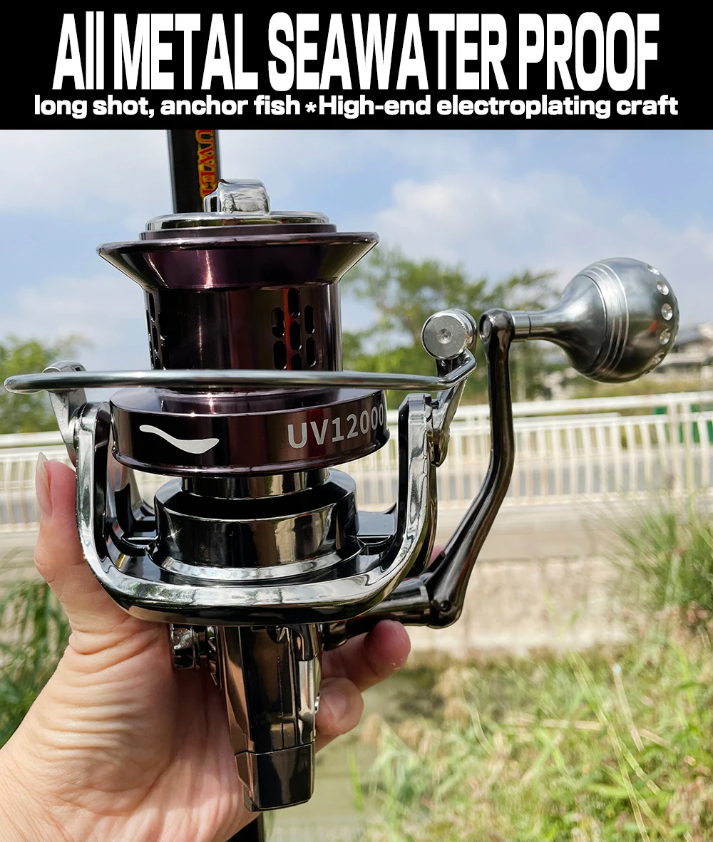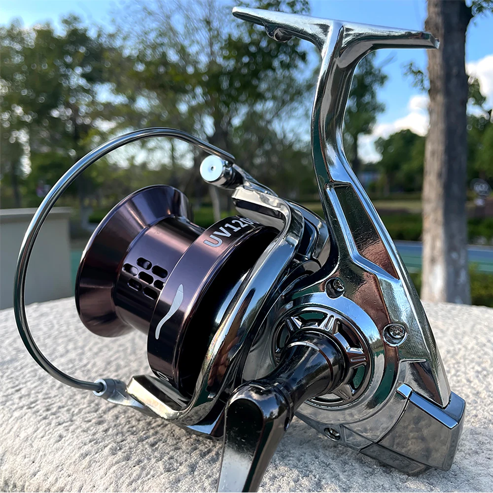 Carrete giratorio De pesca, cuchara Molinete fortalecedora De Metal, 25KG, arrastre máximo, Carretilha De Pesca, Accesorios, aparejos De carpa MarCaracterísticas: 3. Mango de aleación de aluminio, firme y cómodo4. Brazo de roca intercambiable izquierdo y derecho5. Bobina de línea de tiro de metal más gruesa, duradera, no deformada.6. Cuerpo principal de metal de alta resistencia.Información básica:Tipo de carrete: carrete de pesca giratorio de lanzamiento largoRelación de engranajes: 4,0: 1Serie: 12000Carrete: MetalMango: Metal, izquierda y derecha intercambiablesPotencia de arrastre máxima: 25 kgPaquete incluido1 carrete de pesca