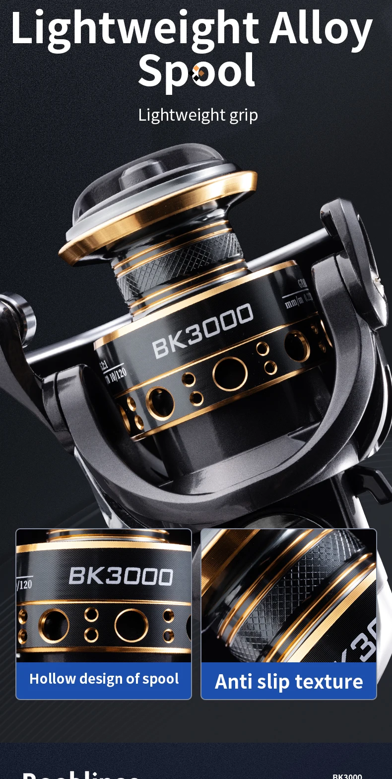 Carrete giratorio de pesca Rooblinos BK, carrete de Metal 5,2: 1/4,7:113BB, rodamientos de bolas, carrete de pesca de carpa BK2000-7000, copa de línea de Metal, Ta de mar