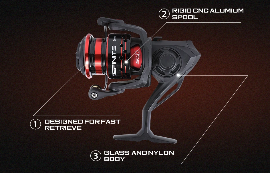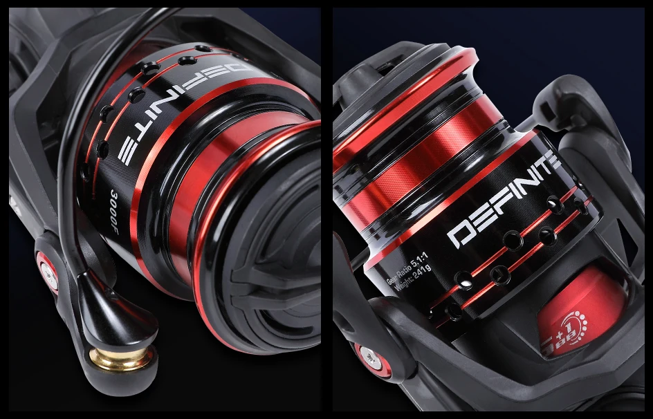 MIFINE DEFINITE Carrete giratorio ligero 5,1: 1 Relación de engranaje para pesca con señuelos de agua dulce y agua salada Serie 1000-4000 Pesca de carpa