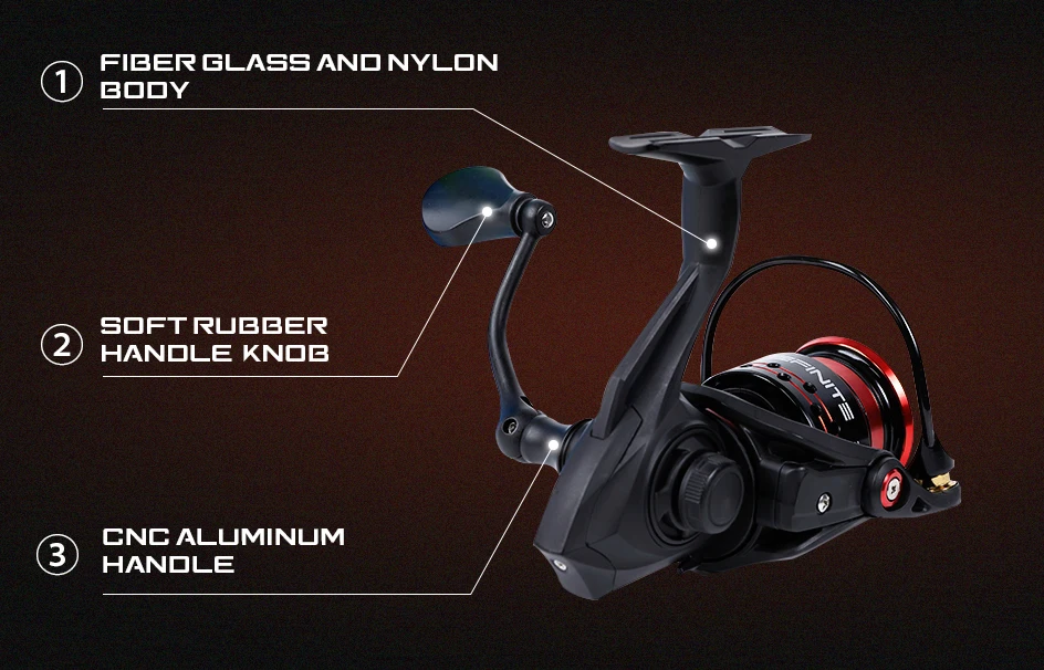 ● Mango de aluminio: el mango de aluminio mecanizado CNC ligero y las perillas de mango de goma suave te hacen sentir cómodo durante tu experiencia de pesca. Siéntase libre de llevarlo al océano, a la escasez, al vapor, al estanque de reserva o al río.