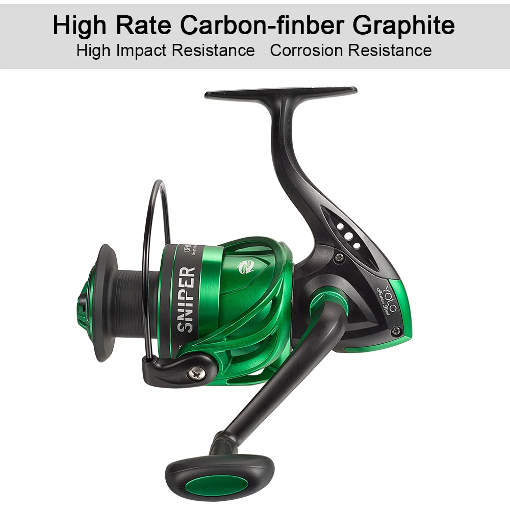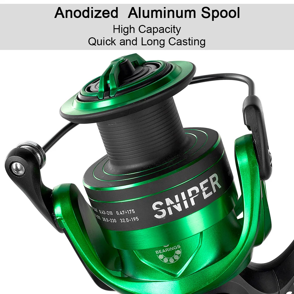 *Aspecto impresionante.El conjunto verde metálico y Negro combina perfectamente con cualquier varilla. Le destacará de todos los pescadores en el mismo barco.