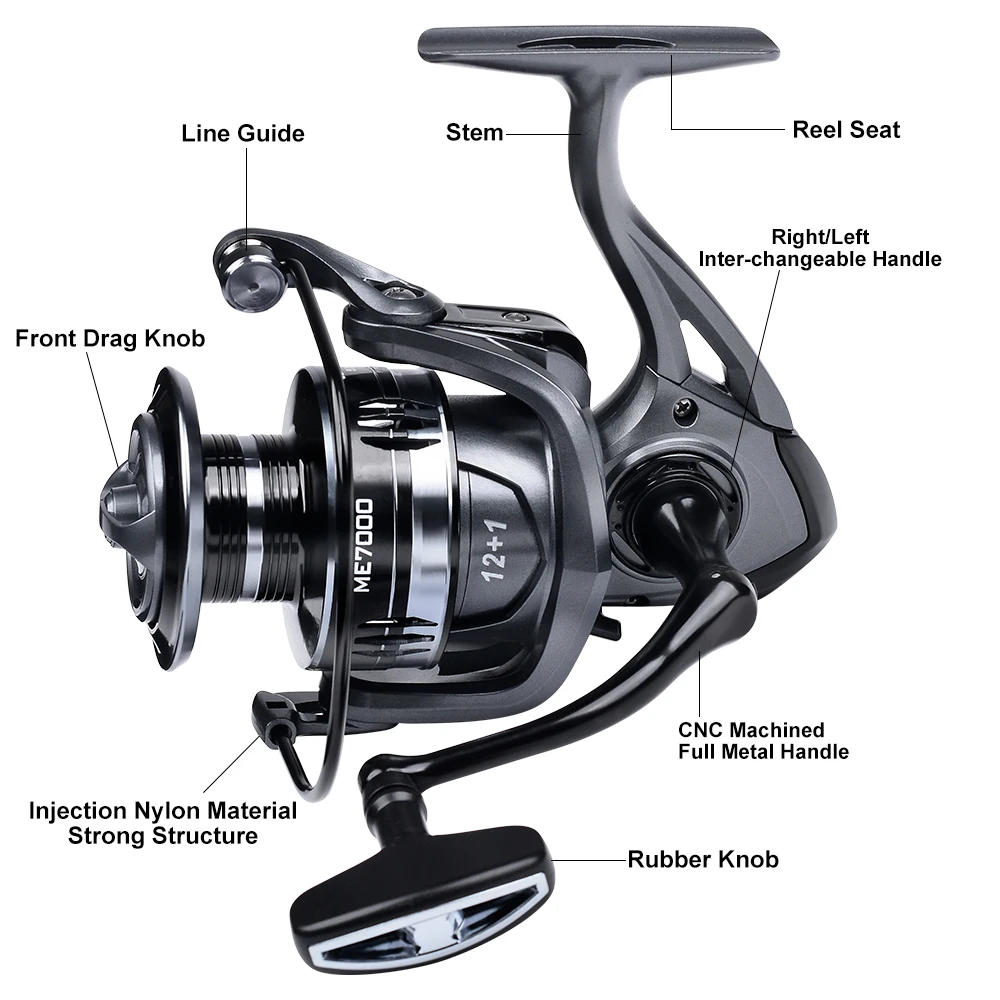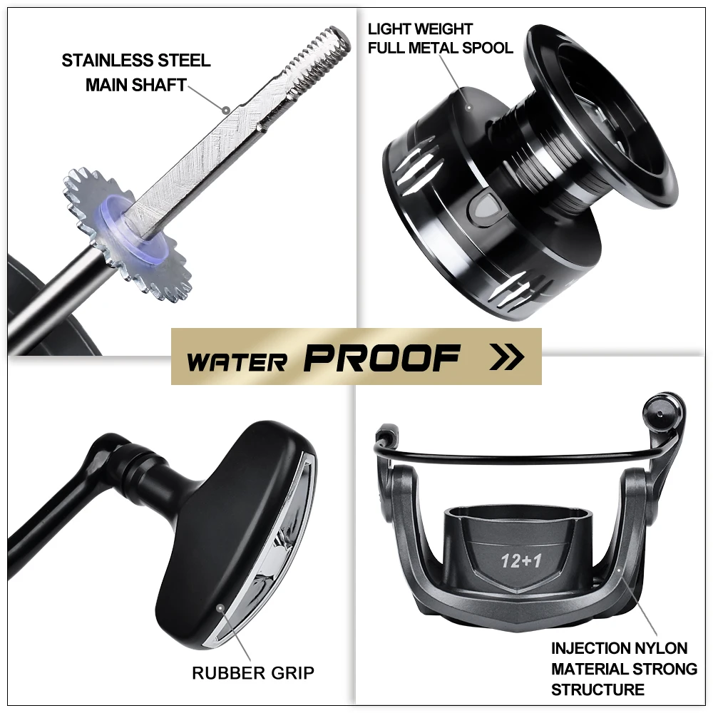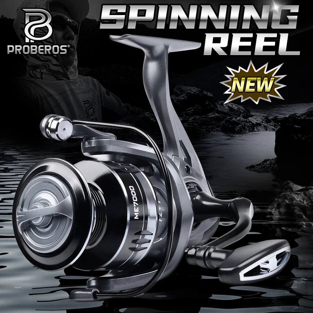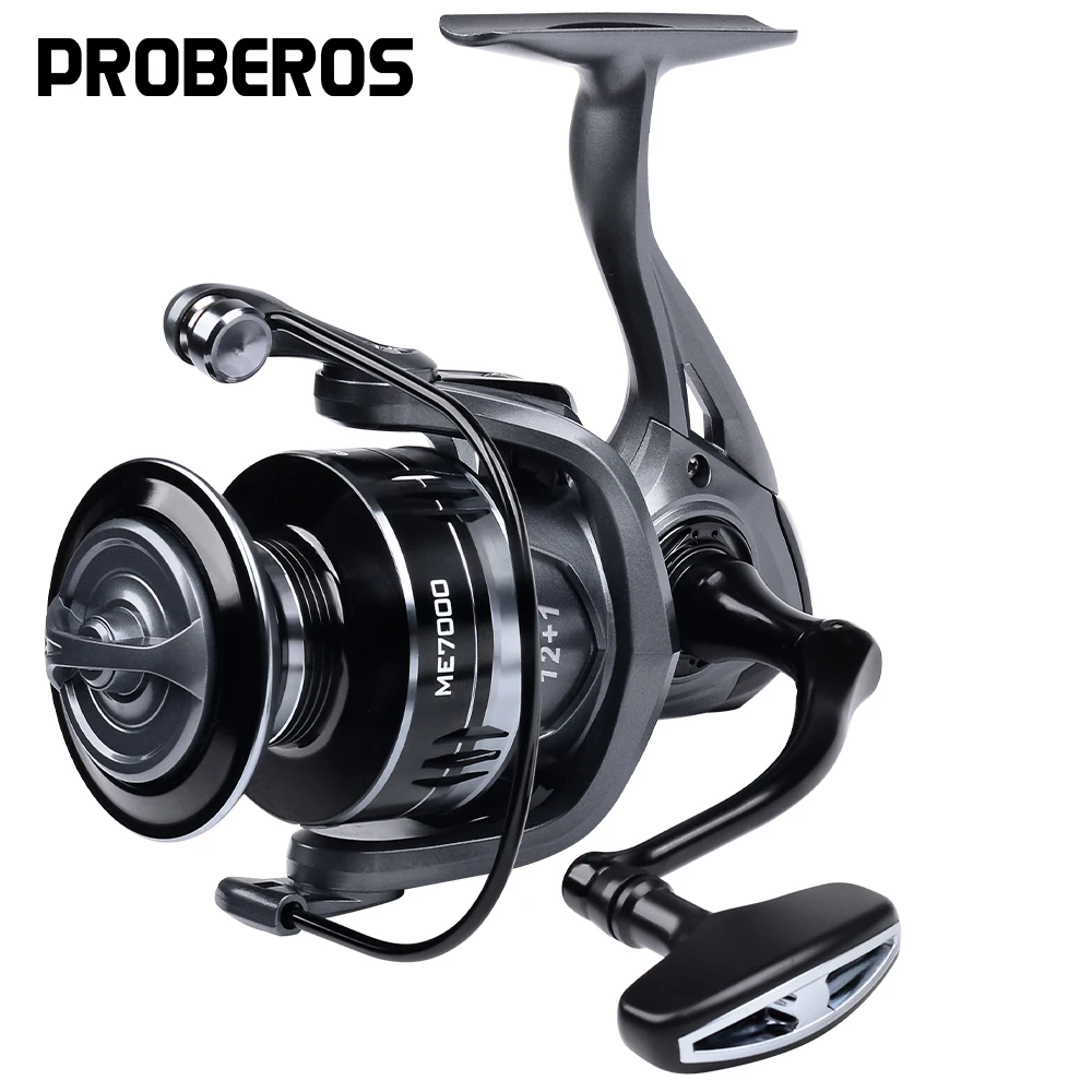 Carrete giratorio Proberos: mano izquierda/derecha intercambiable, carrete de aluminio y brazo basculante, arrastre máximo de 19,8 lb, rendimiento duradero