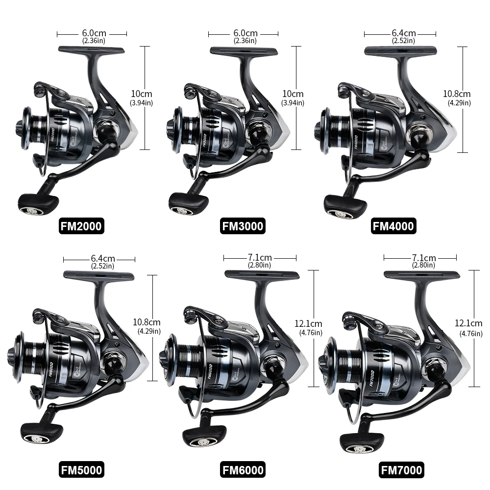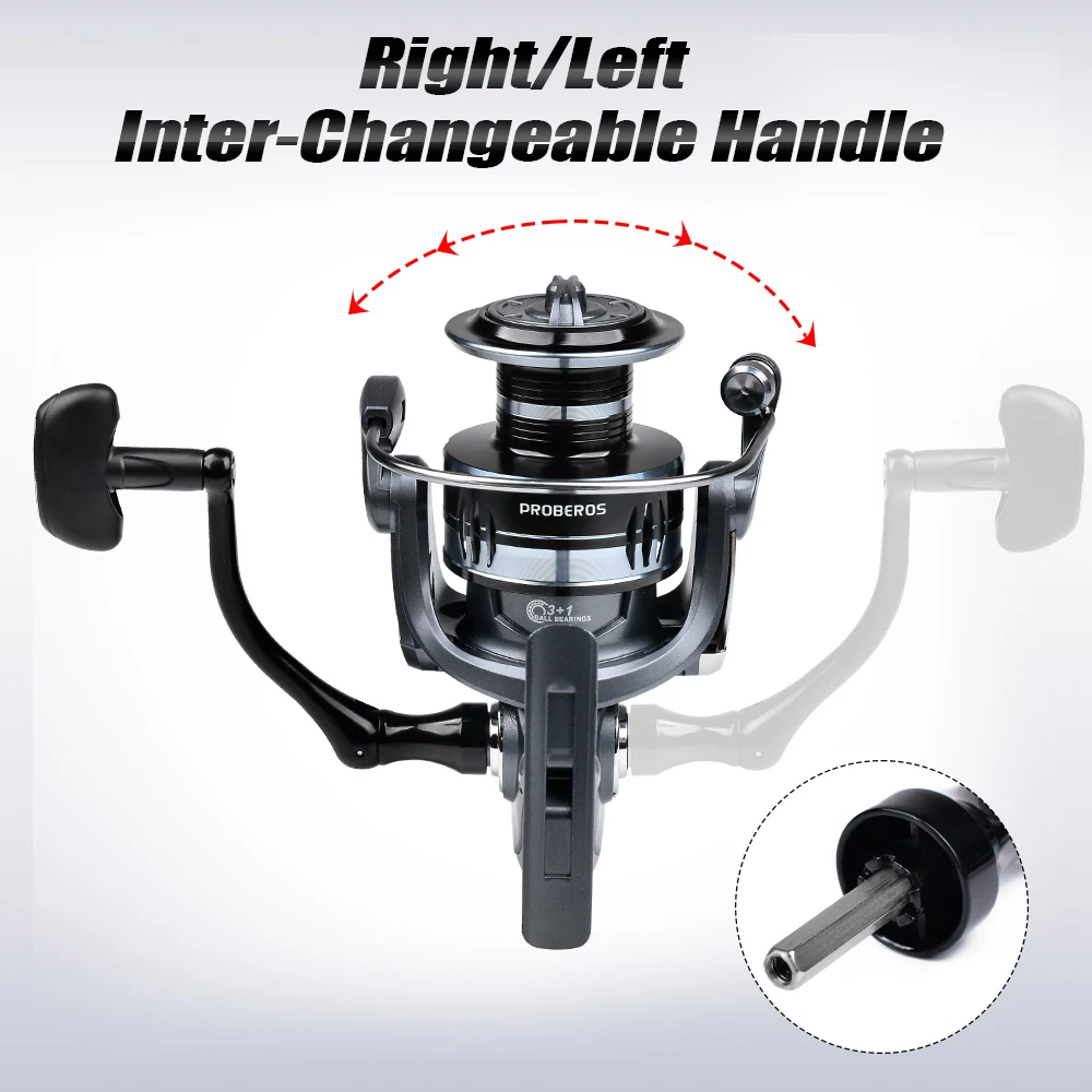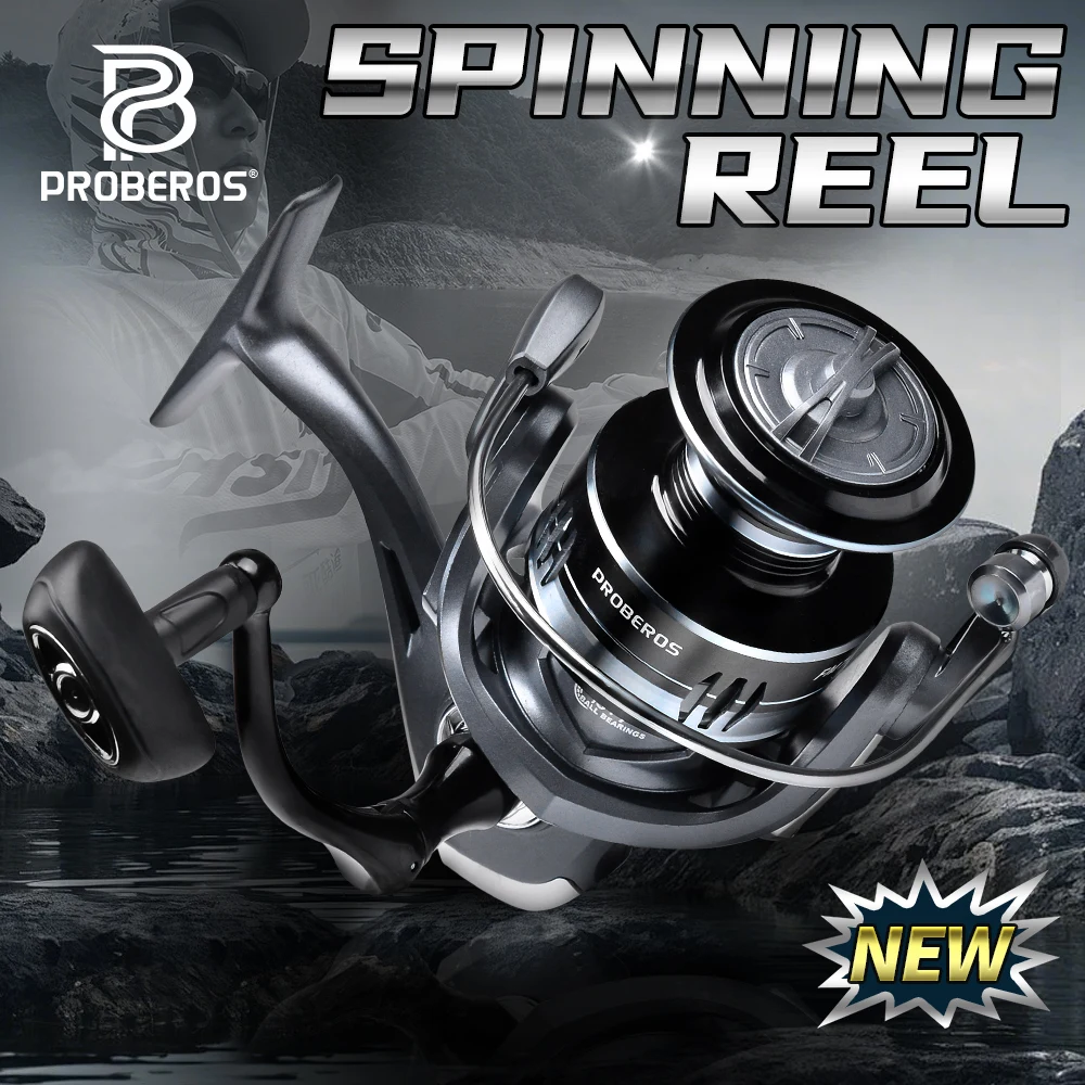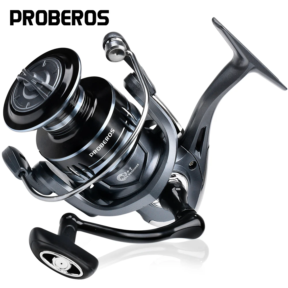 Carrete giratorio PROBEROS serie 1000 ~ 7000, relación de engranaje 5,2: 1, arrastre máximo de 22 libras, carrete de Metal de aleación de aluminio, carrete de pesca giratorio
