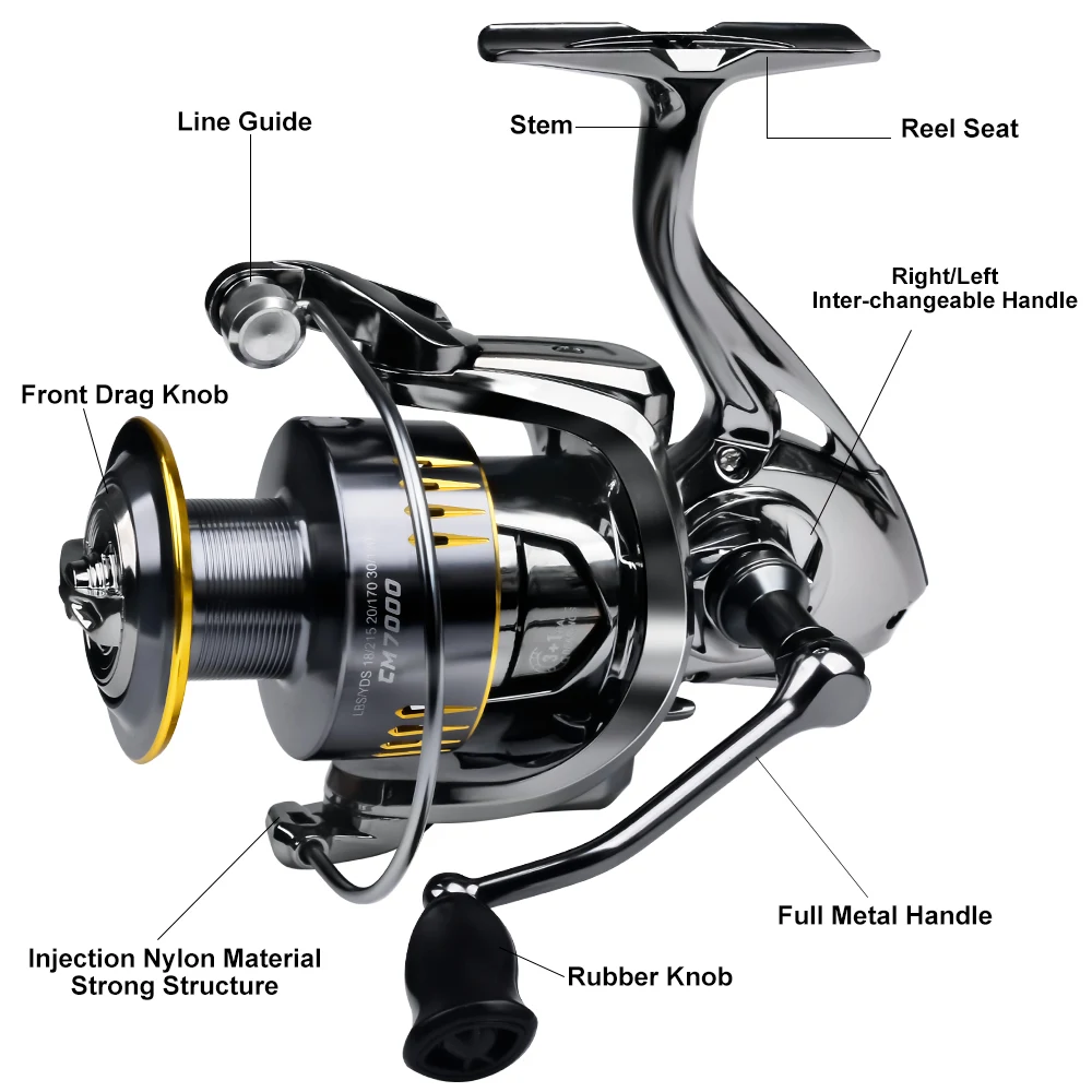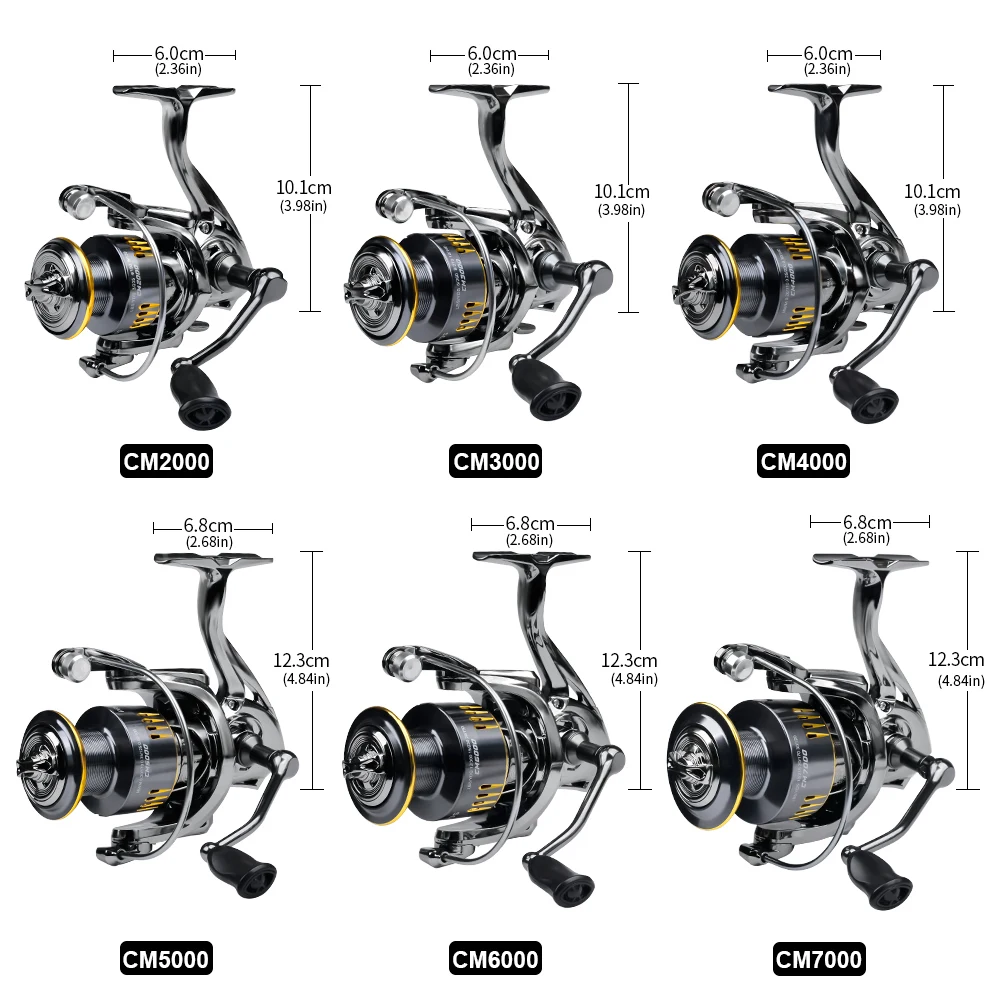 Carrete giratorio Proberos serie CM2000-7000, relación de engranaje 5,2: 1, ambidiestro, carrete de pesca giratorio