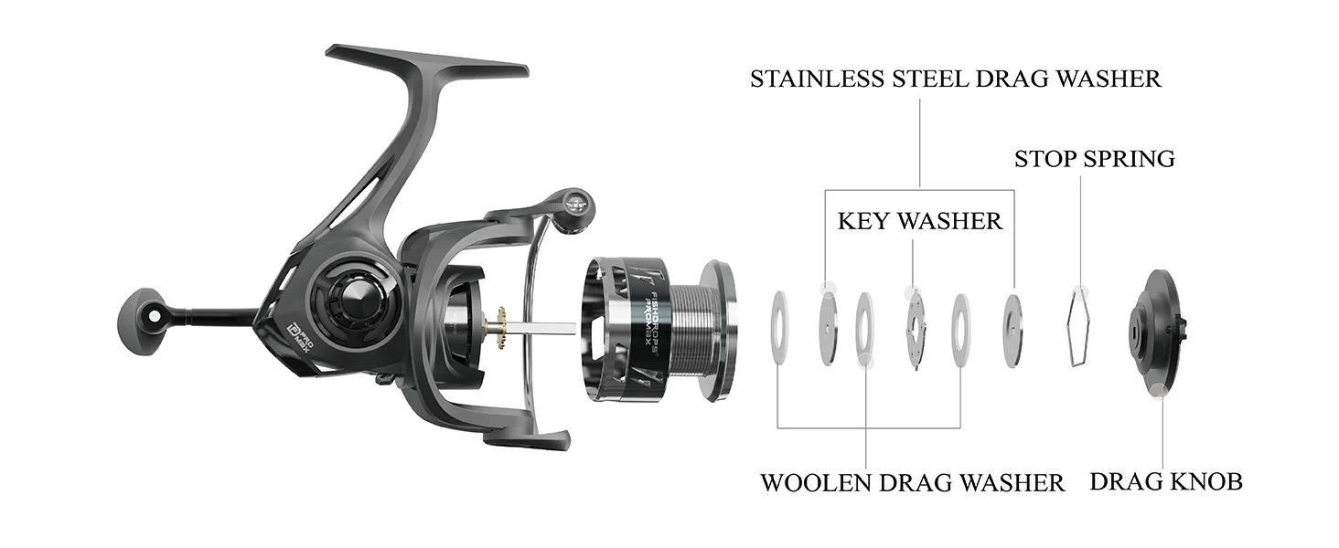 Potente sistema de arrastre: fuerza de arrastre máxima de hasta 22 libras, funciona de manera suave y estable.Maneja fácilmente corridas repentinas desde lubina o snook, manteniéndote en control durante las peleas para nunca dejar que los peces trofeos se escapen.