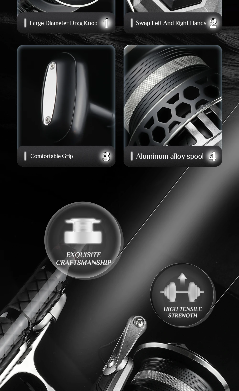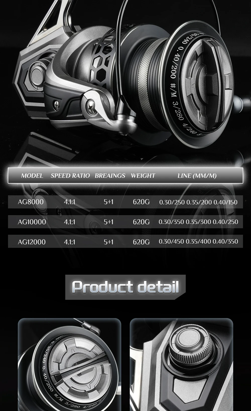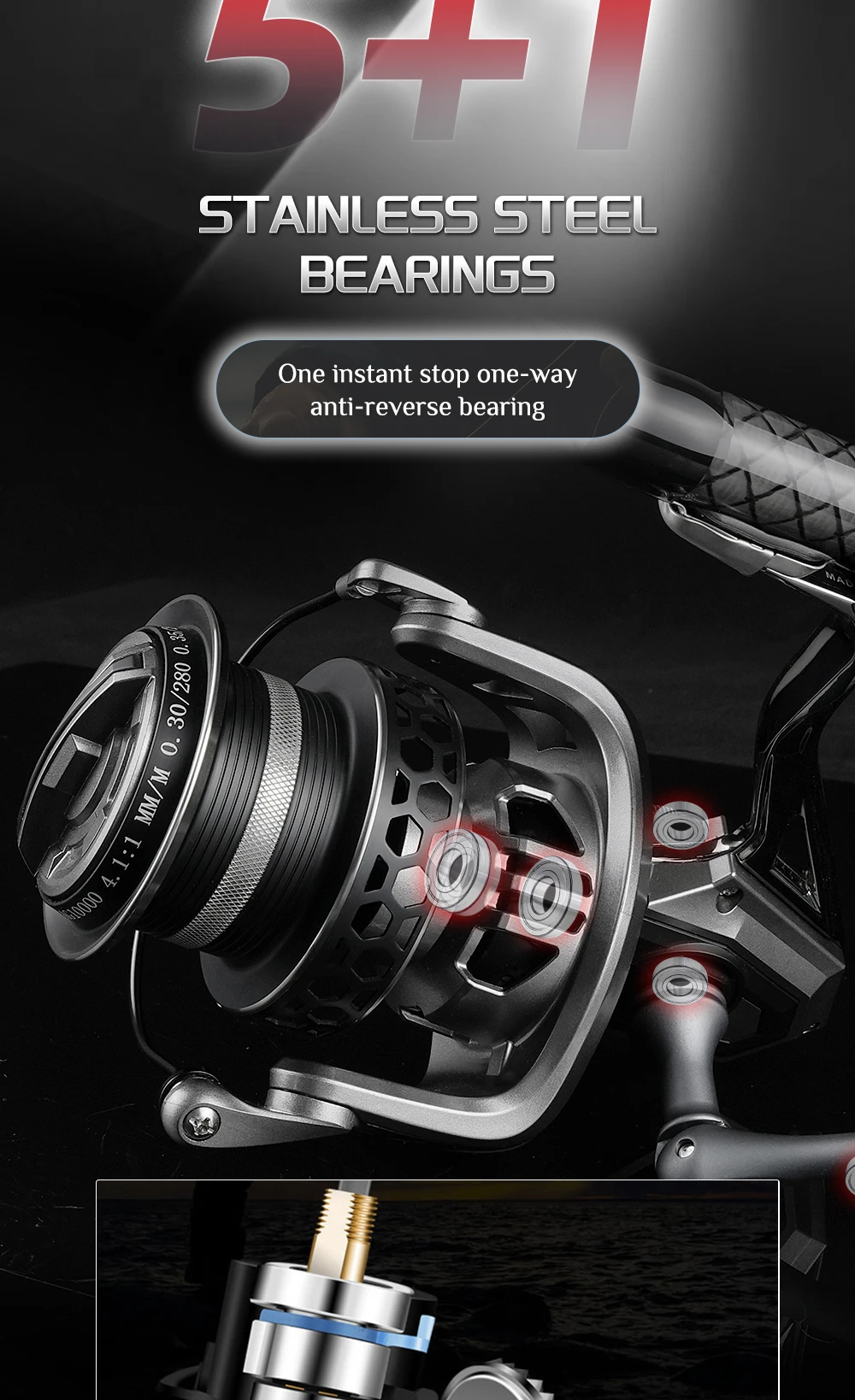 Carrete giratorio ROOBLINOS AG, carrete de Metal, mango de Metal, pie de Metal, carrete de pesca 5 + 1BB