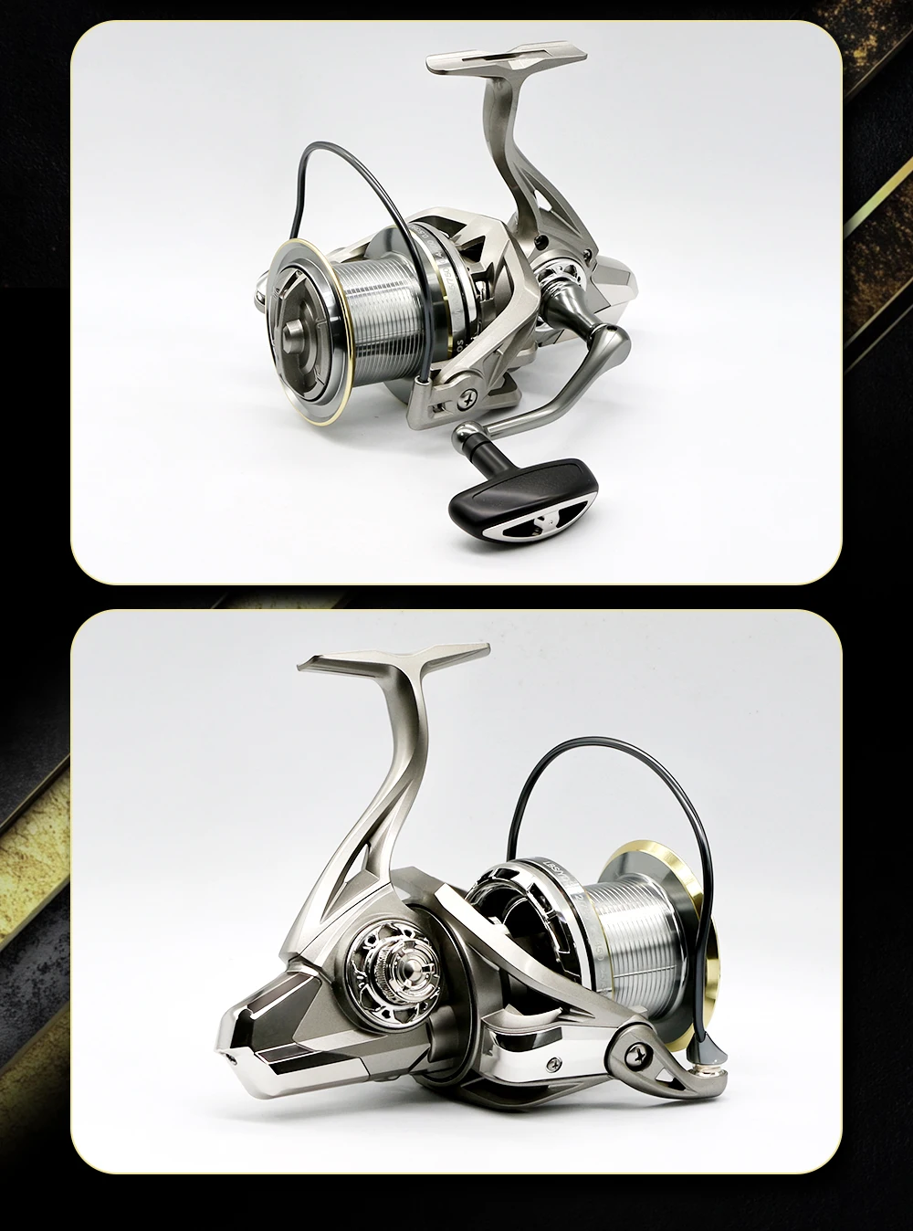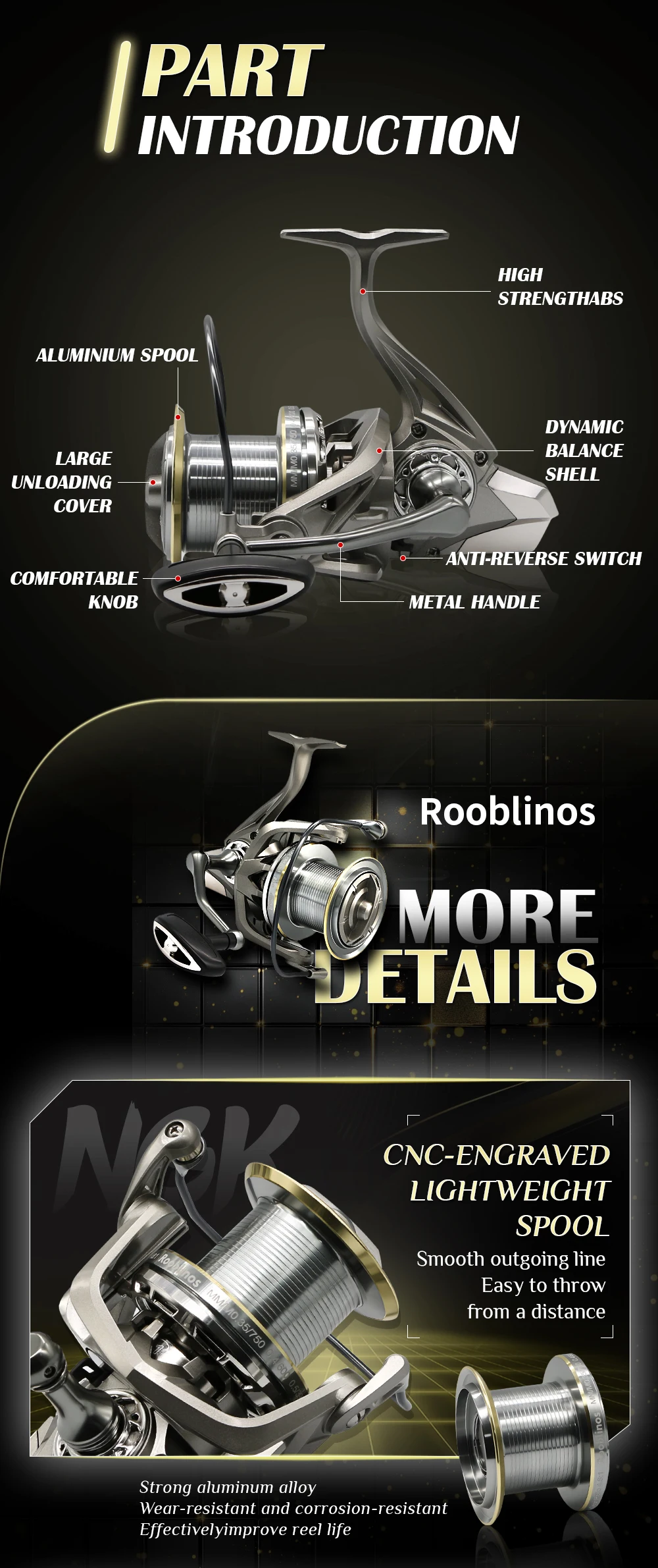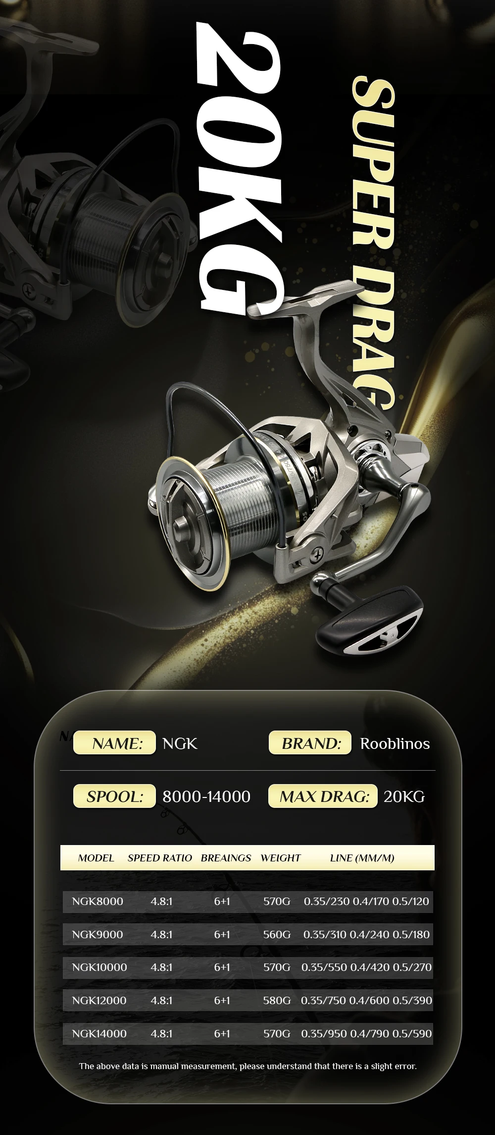 Carrete giratorio ROOBLINOS NGK 4,8:1 relación de engranaje 8000-14000 tamaño de carrete carrete de pesca plateado cuerpo de Metal carrete de agua salada