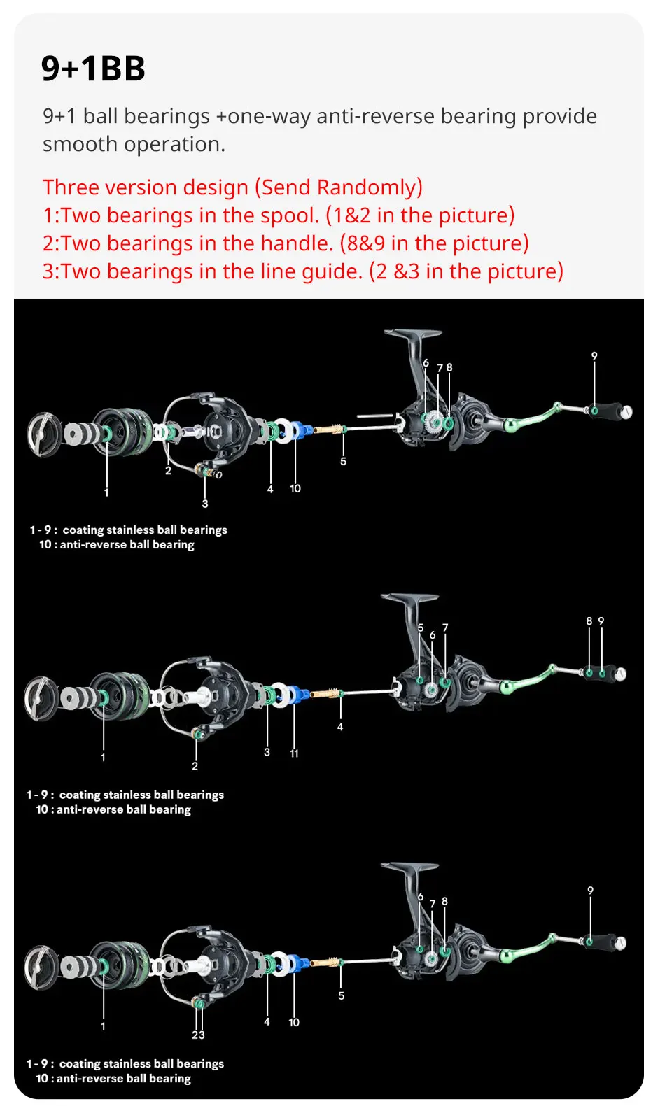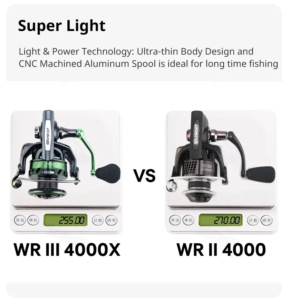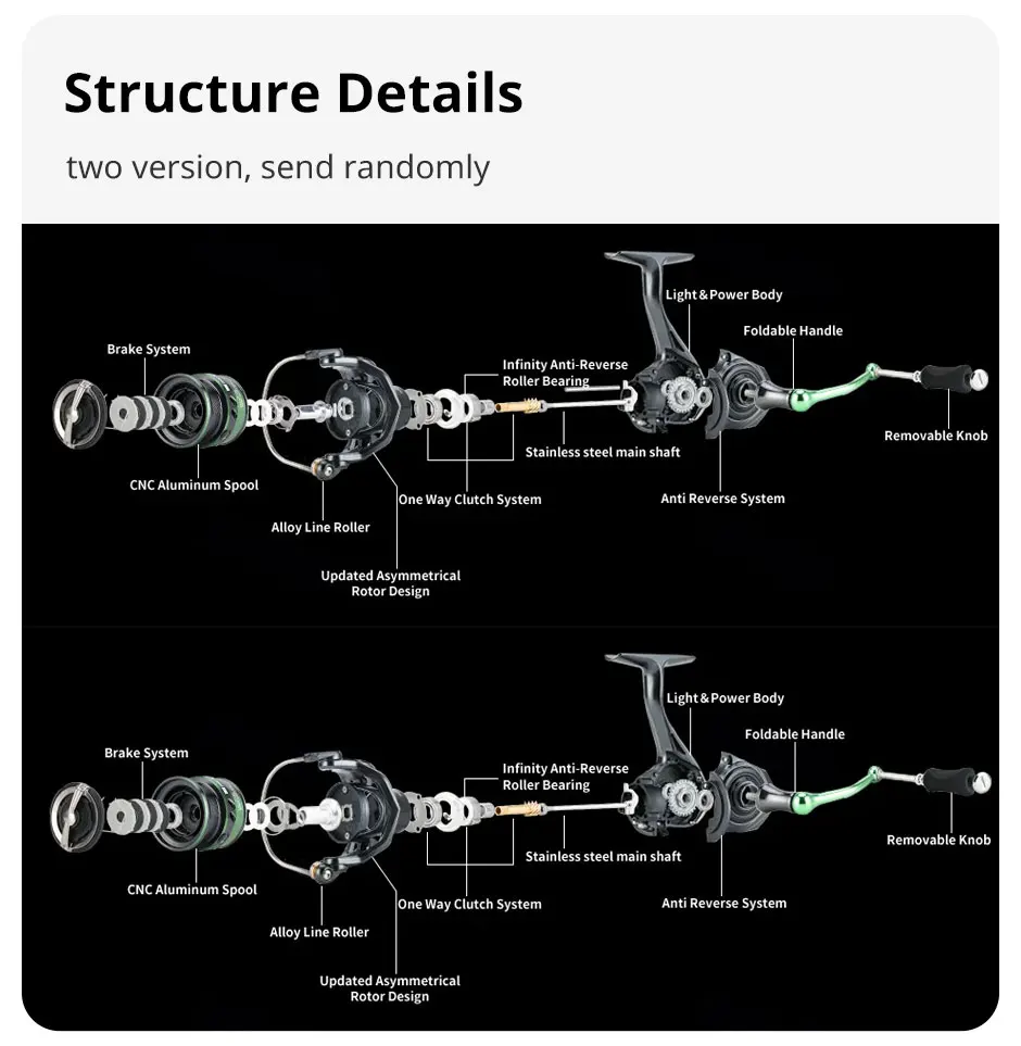 1. Tecnología ligera y eléctrica: el diseño de cuerpo ultrafino y el carrete de aluminio mecanizado CNC son ideales para pescar durante mucho tiempo.