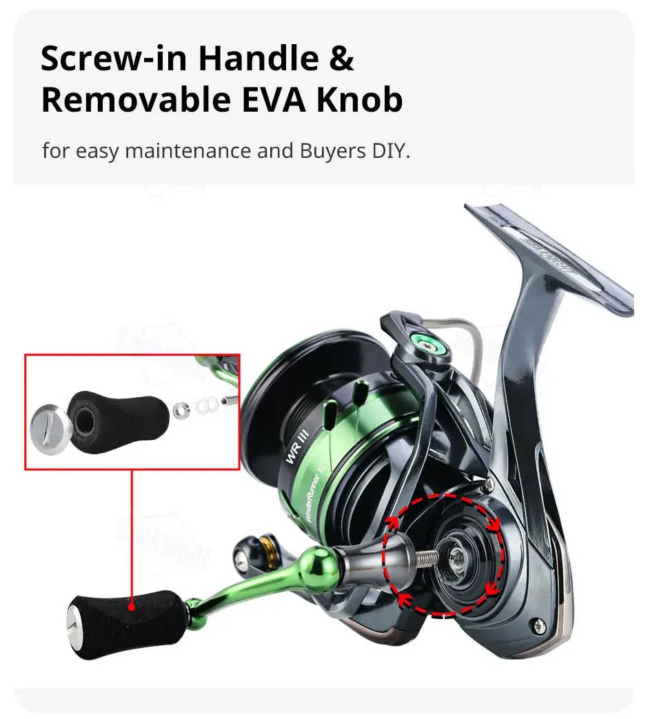 6. Mango atornillable y perilla extraíble de EVA: para un fácil mantenimiento y los compradores bricolaje.