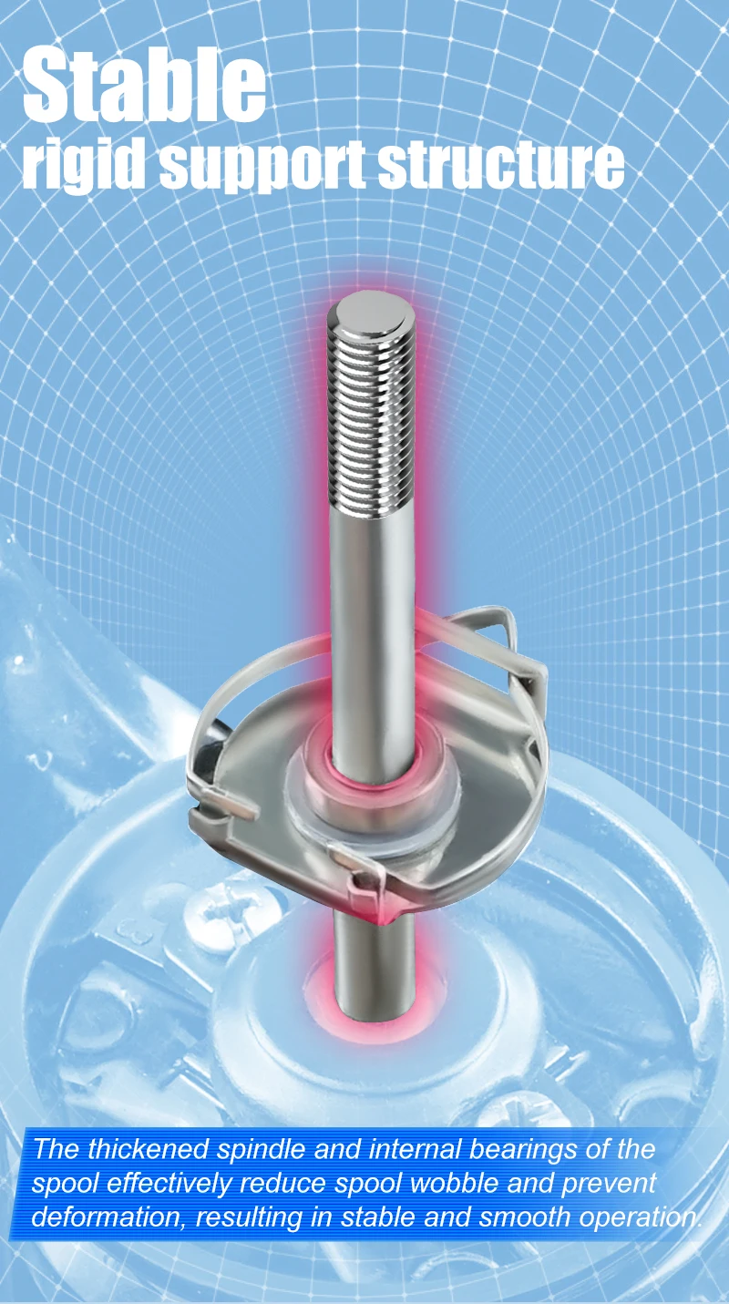 El husillo engrosado y los rodamientos internos del carrete reducen eficazmente la columna/oscilación y evitan la deformación, lo que resulta en un funcionamiento estable y suave.