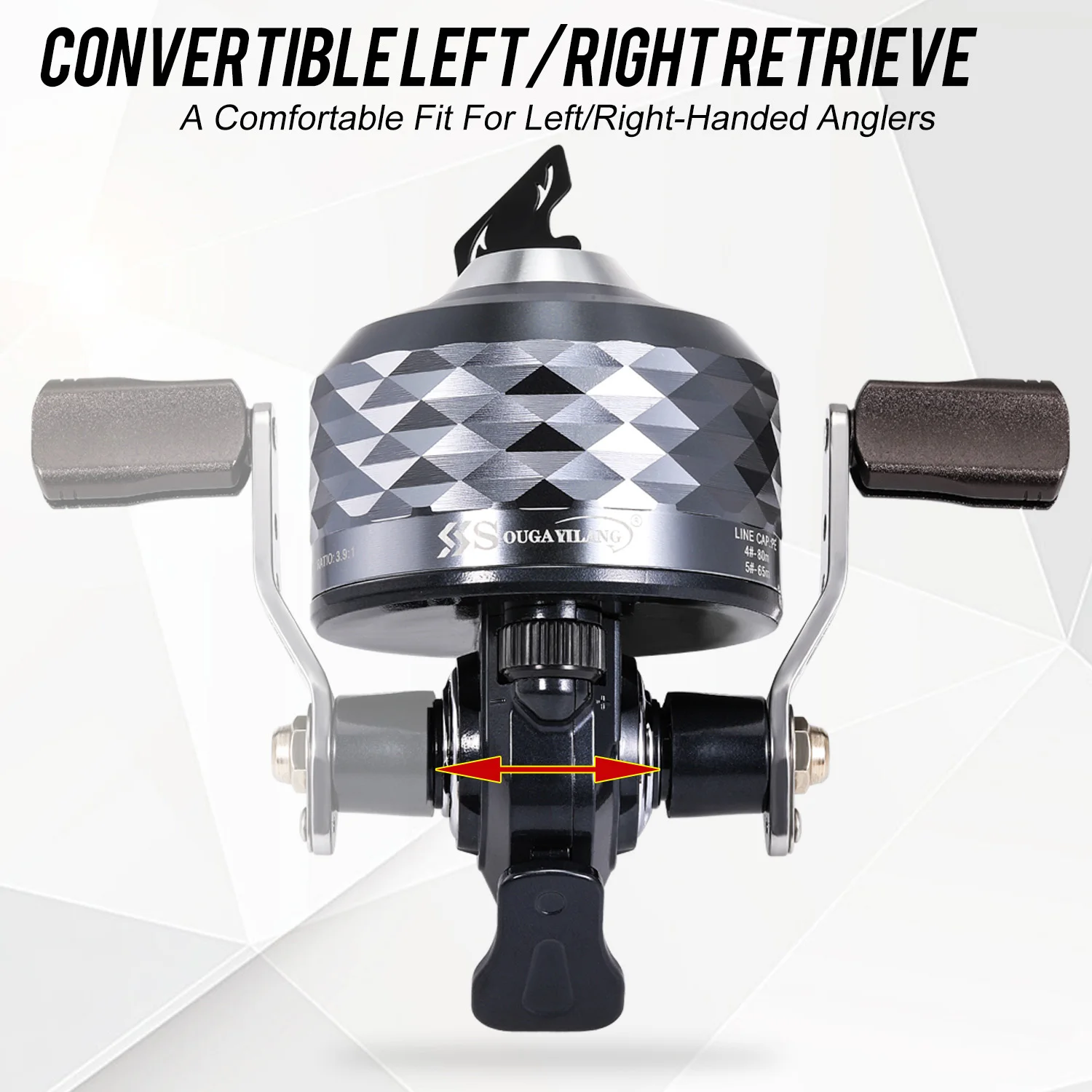 MANGO REVERSIBLE: a diferencia de la mayoría de los carretes giratorios, el carrete de pesca con botón Sougayilang cuenta con un increíble aluminio, que se puede cambiar rápida y fácilmente de la recuperación de la mano izquierda o derecha simplemente quitando la tapa del retenedor del mango y moviendo el mango hacia el lado opuesto del carrete.