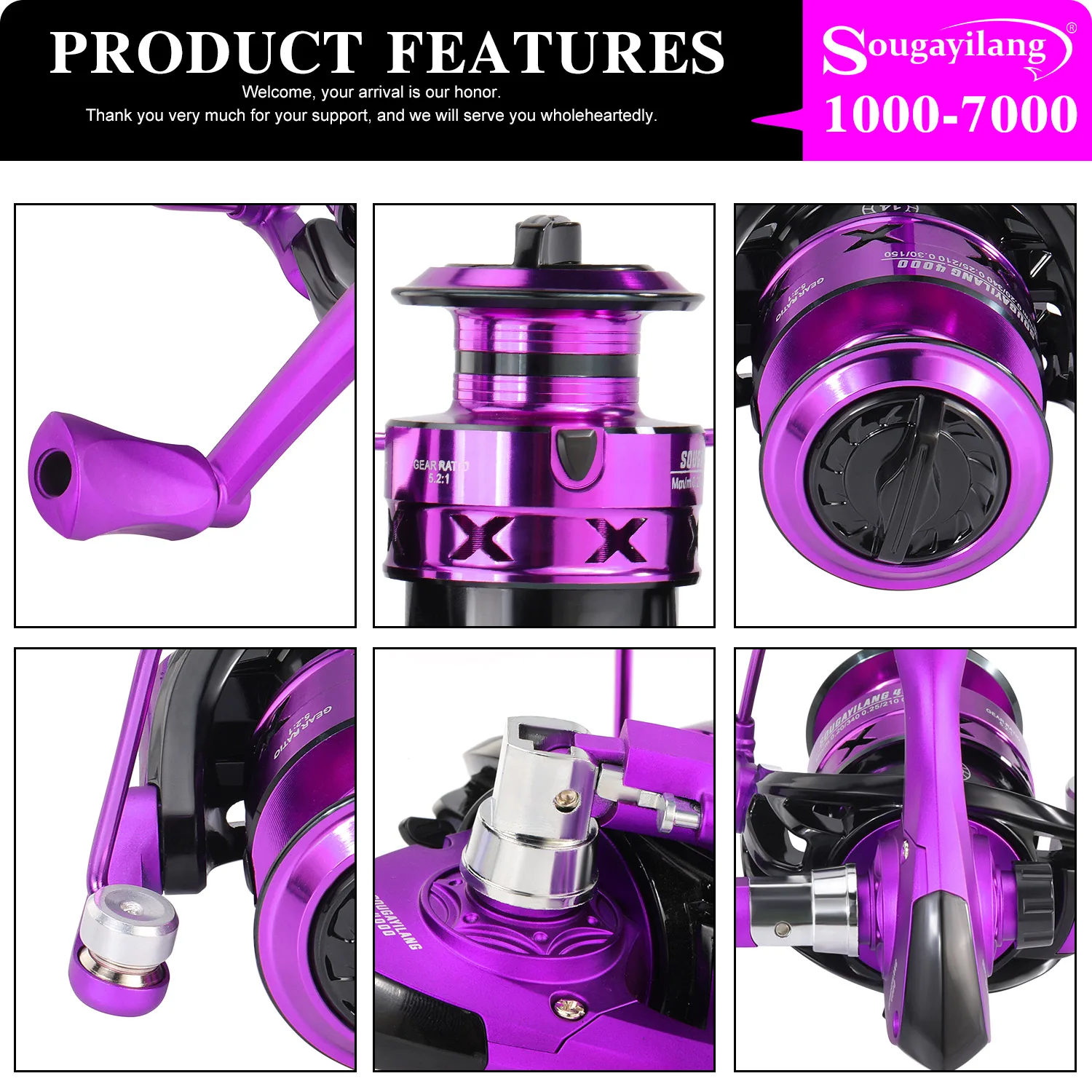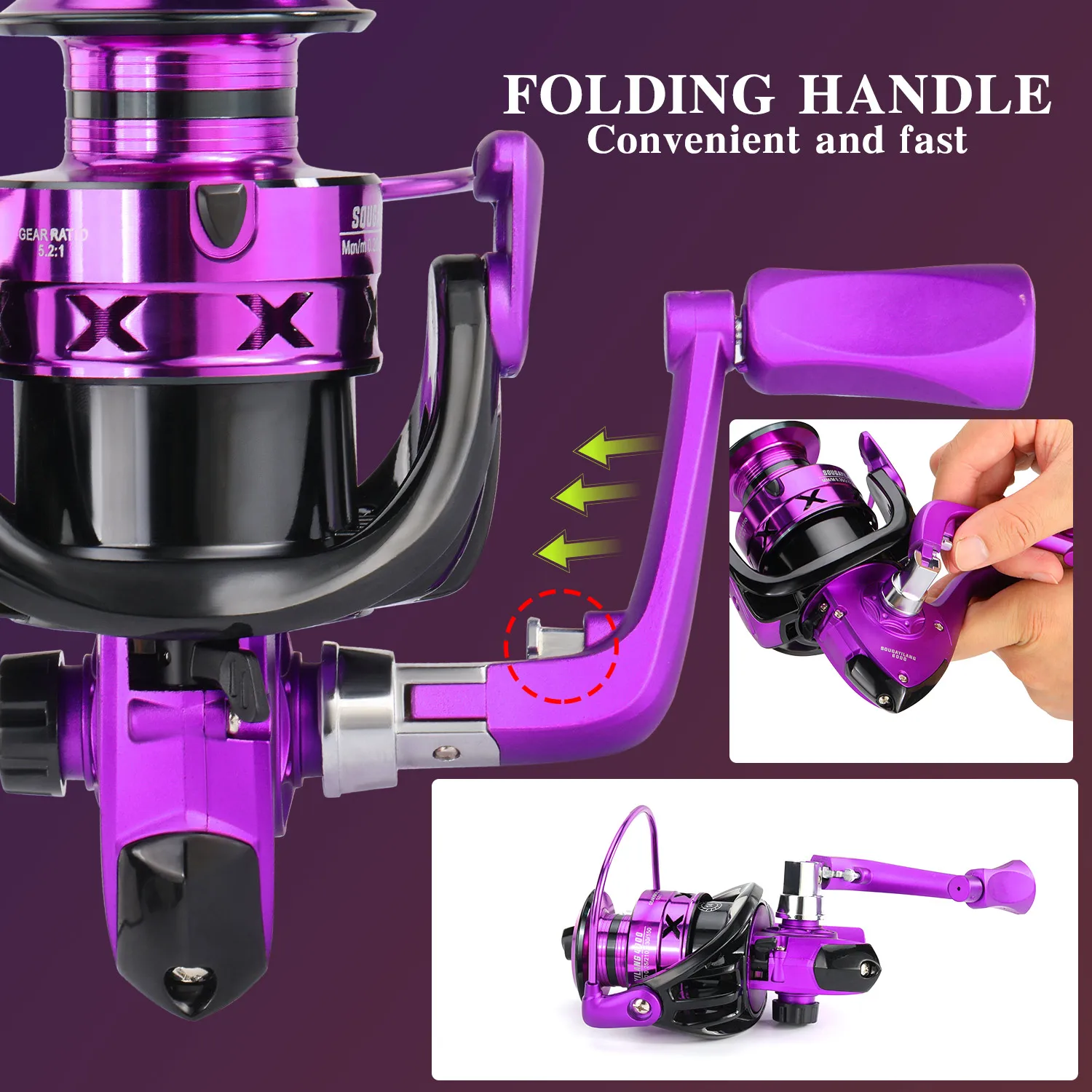 2. Carrete oblicuo totalmente metálico, salida rápida, fácil lanzamiento.