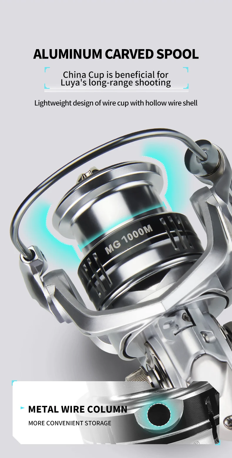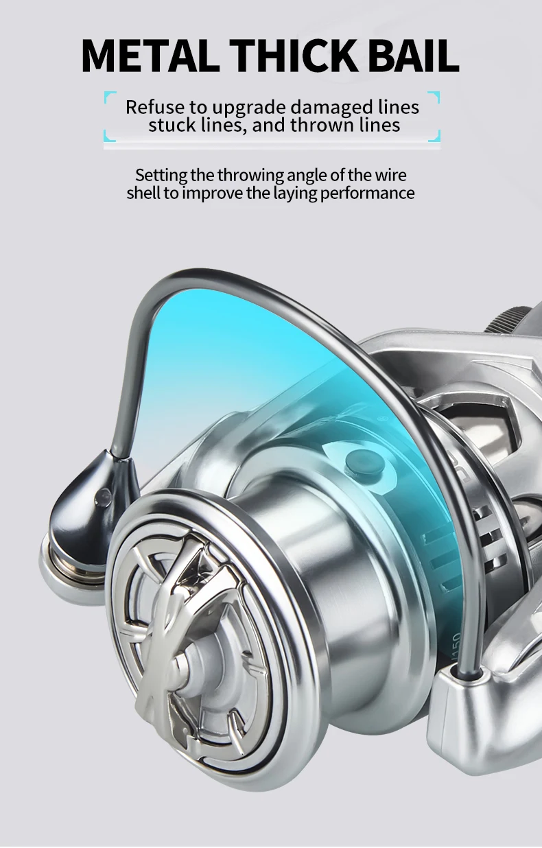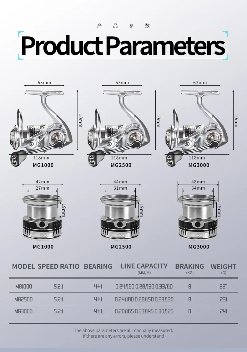 1.Fuerza de frenado súper grande de 8 kg, fácil de regresar a los peces, sin miedo a los objetos grandes; Pastillas de freno de fieltro de lana, ajuste flexible de la fuerza de descarga; Durable y resistente, con frenos de alta resistencia