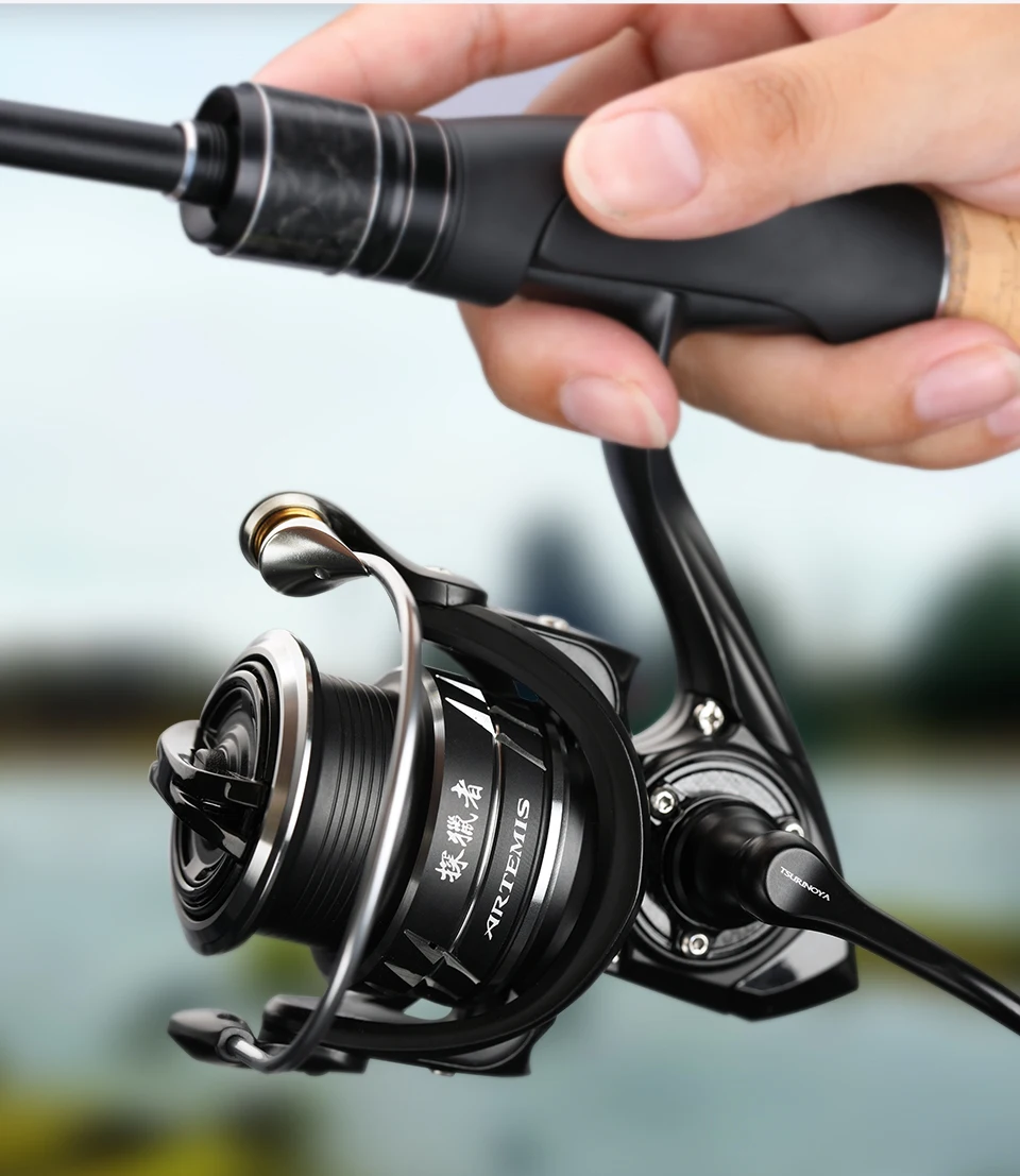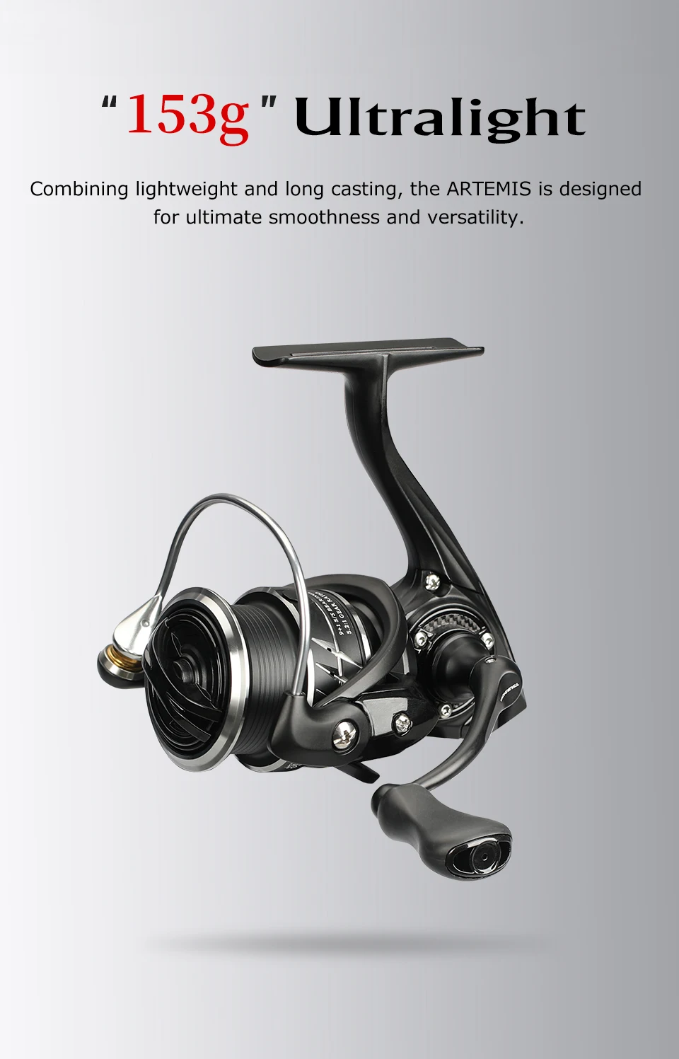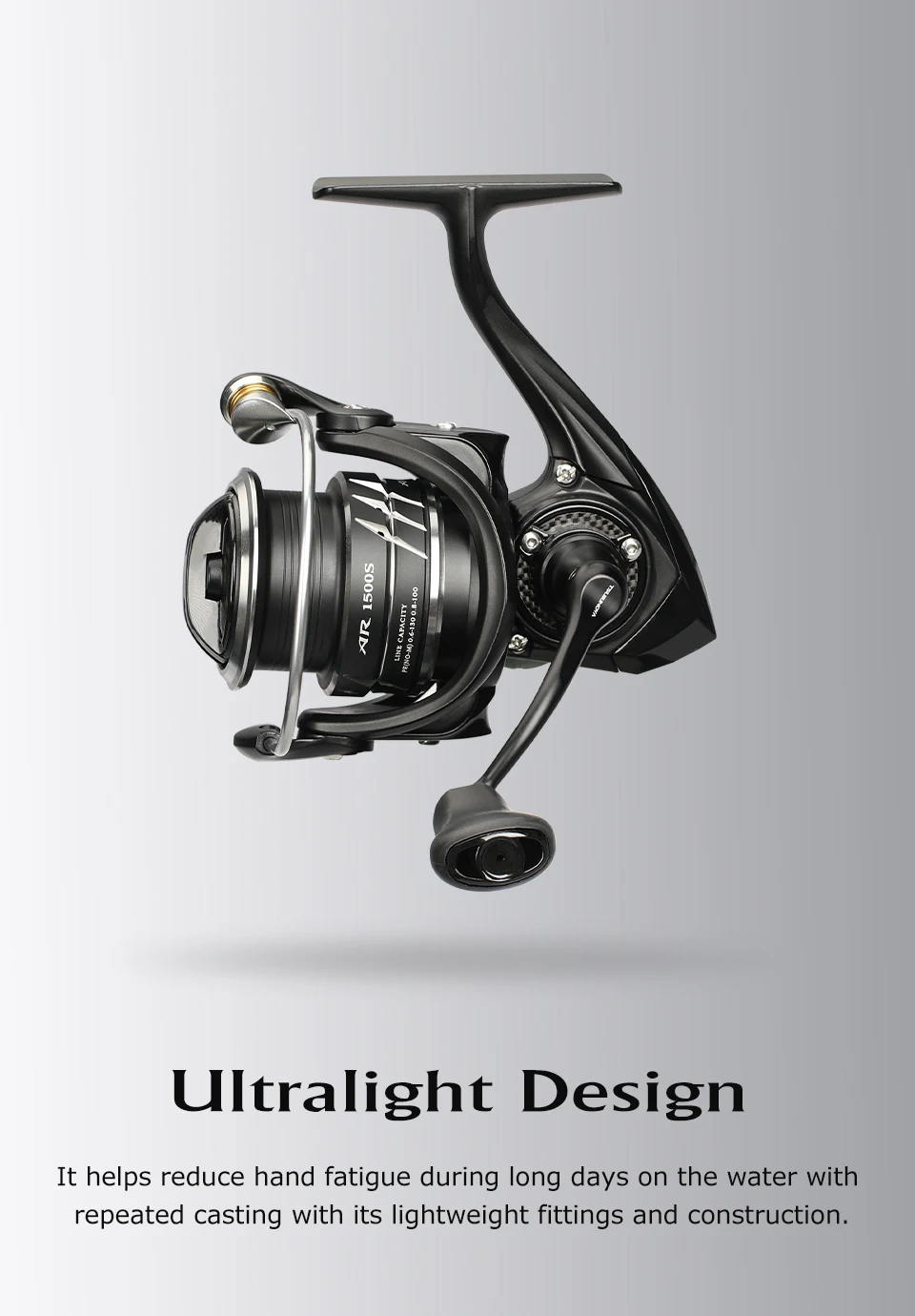 El carrete giratorio cuenta con un carrete de corte superficial de gran diámetro que cumple con la capacidad del hilo al tiempo que reduce la fricción y ofrece una distancia de lanzamiento aún mejor.