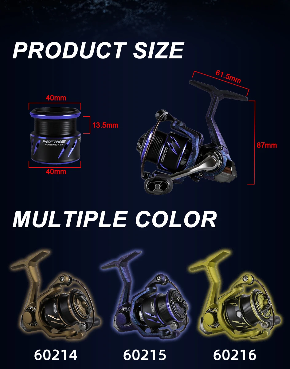 Carrete de pesca giratorio súper ligero MIFINE CONCEPT 5,1:1 relación de engranaje carrete de repuesto bobina de pesca de carpa de agua dulce serie 1000-4000