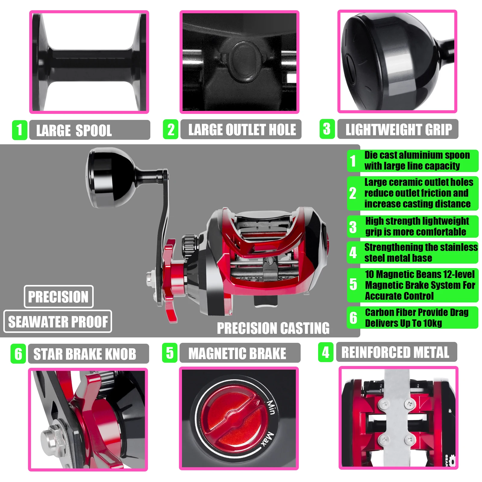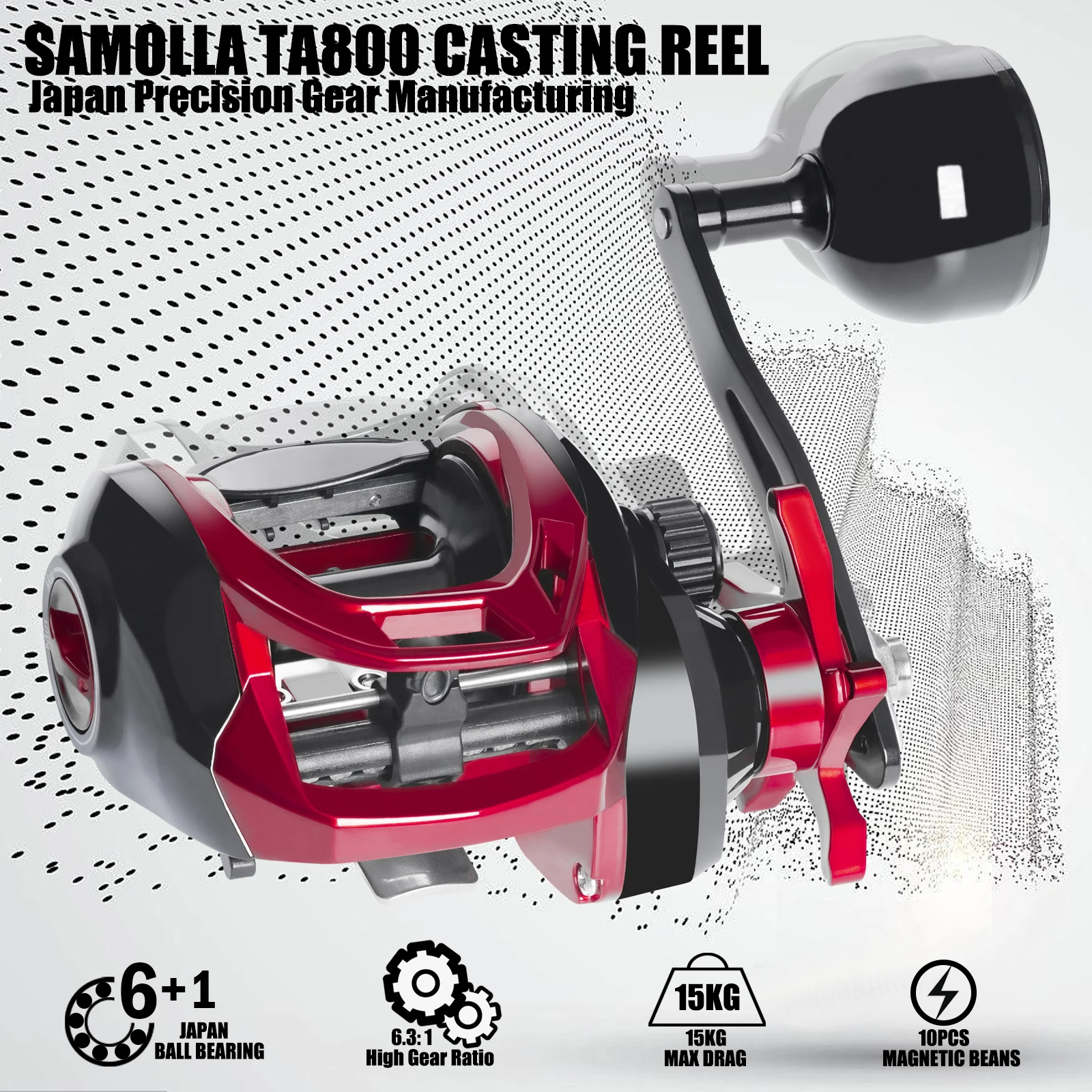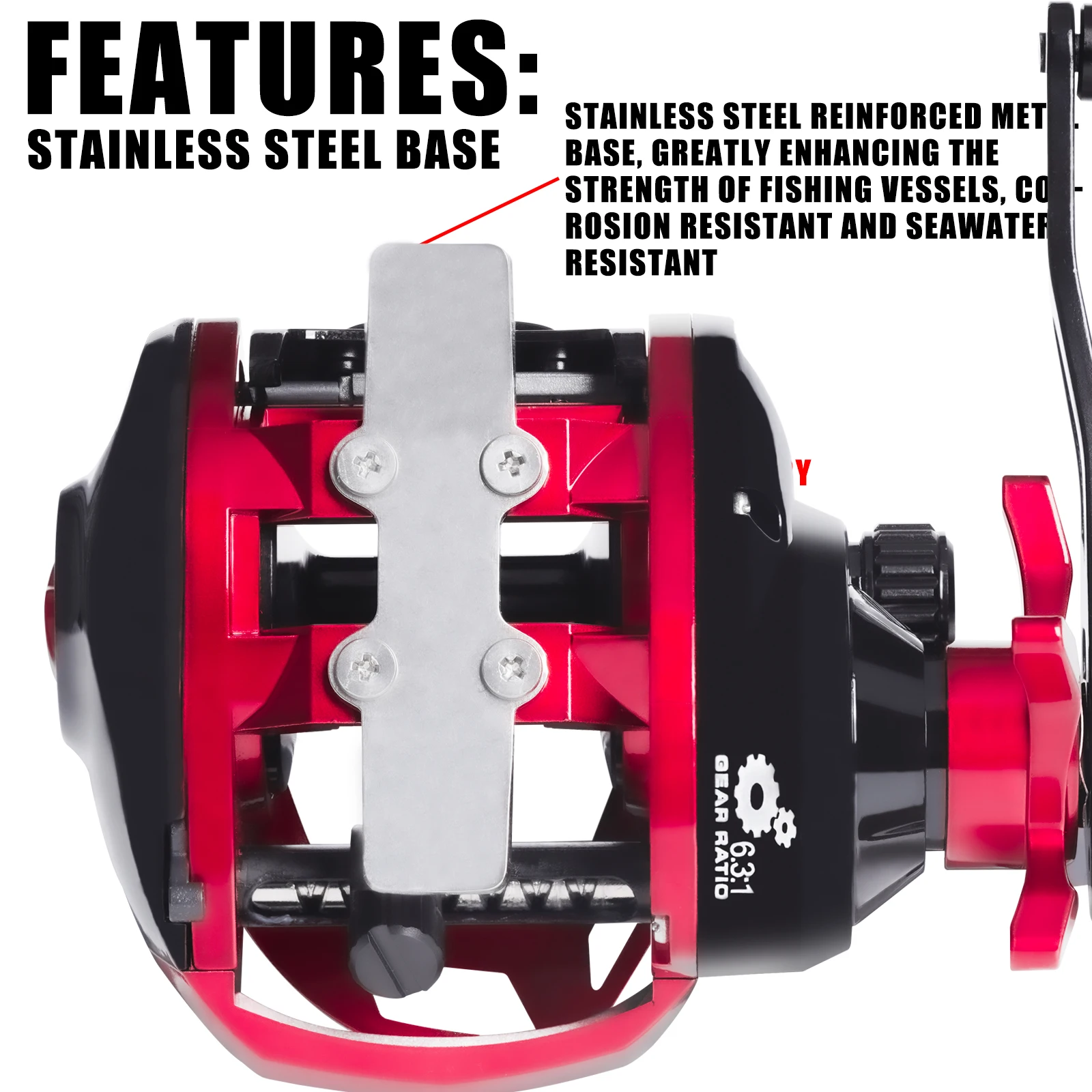 Carrete grande para pesca en el mar, Base de Metal para arrastre de Catfishing, agua salada, impermeable, 6,3: 1, 15KG