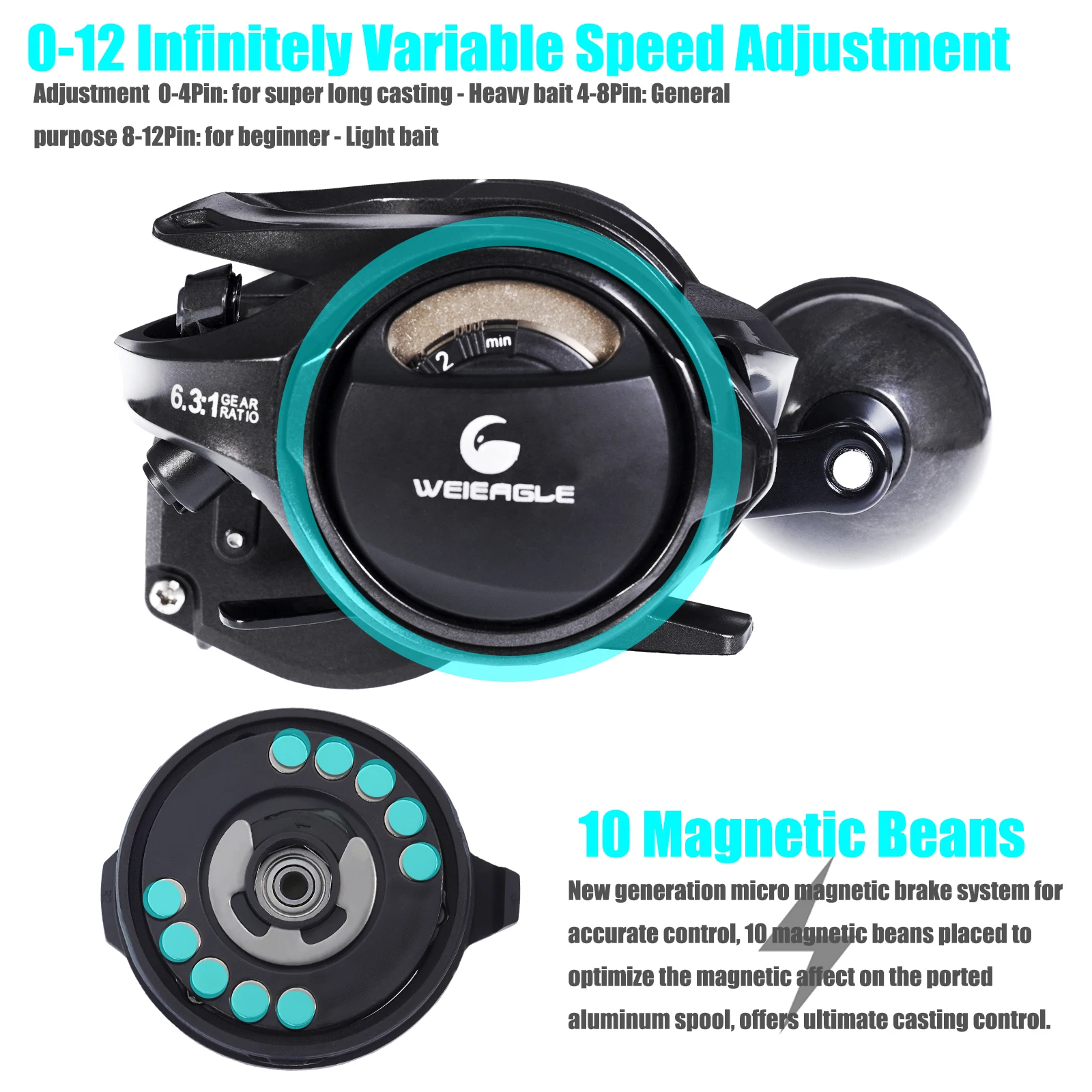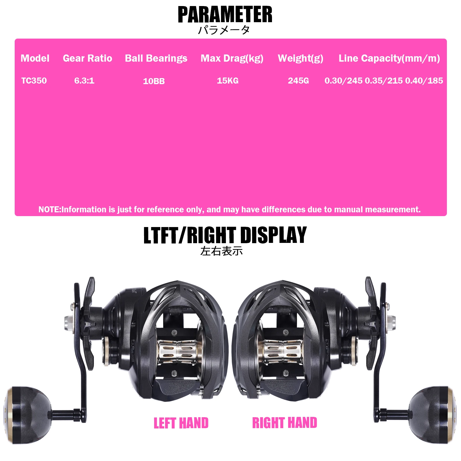 4. Múltiples opciones: los carretes de baitcast TC350LP vienen con opciones de relaciones de transmisión de 6,3: 1 con diferentes características recubiertas de color que lo convierten en un carrete de pesca de adaptación múltiple. También puede seleccionar un mango doble ordinario o un mango fuerte de acuerdo con sus preferencias personales.