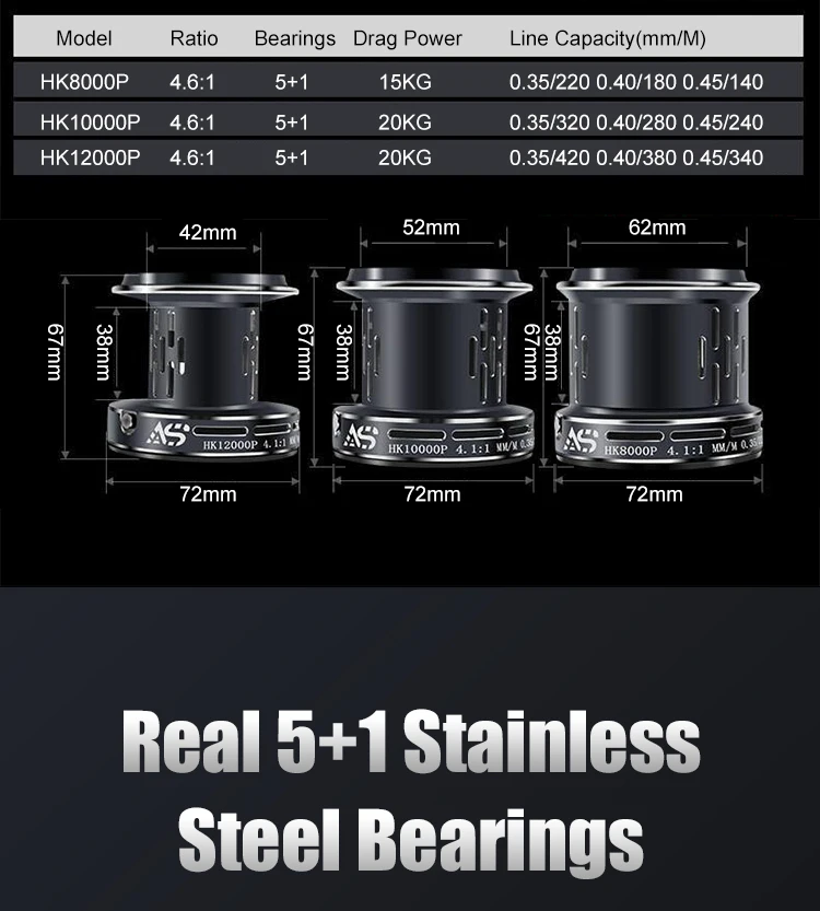 8000| Relación de engranajes: 4,6:1| Peso: 650 g| Rodamientos: 5+1BB| Arrastre máximo: 15 KG| Capacidad de línea: 0,35--220, 0,45--180
