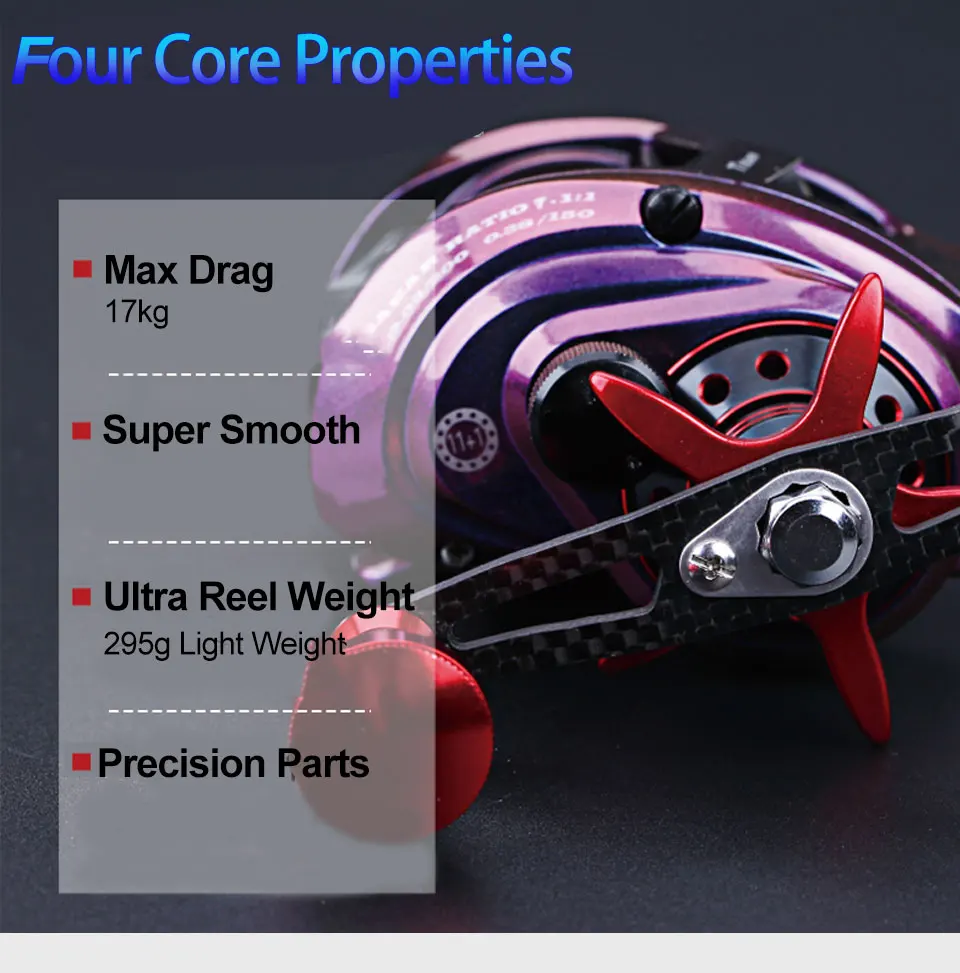 Carrete de jigging de paso lento 17 kg Relación de engranaje 7,1:1 Metal de aluminio 11 + 1BB Carrete de pesca Shore de fundición de fibra de arrastre Carrete de pesca de agua salada