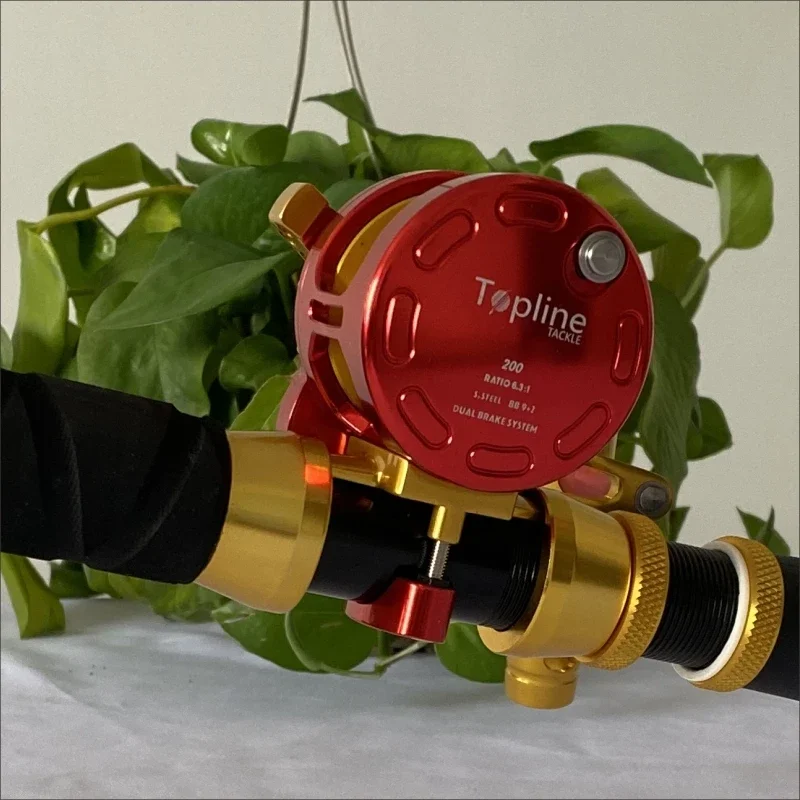 【ergonomic design】–his multiplier drag jigging reel uses new lightweight hollow aluminum alloy bending rocker arm for taking-up more easily. O-type aluminum alloy grip: High quality of Topline Tackle slow pitch jigging reel with new type of aluminum alloy ergonomic design, O-type grip has a pattern on the grip, which can not only prevent slip, but also have a full metal grip feeling.