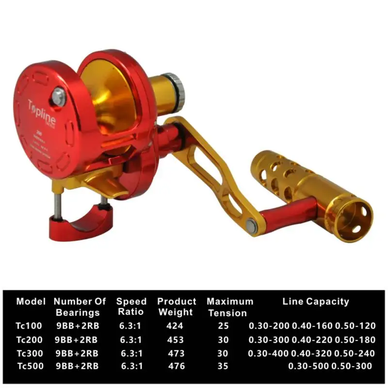 Topline 6.3:1 Slow Pitch Jigging Reel Aluminum CNC Machined High Retrieve Max Drag 35KG 9BB+2RB Sea Grouper Fishing Reel 5000