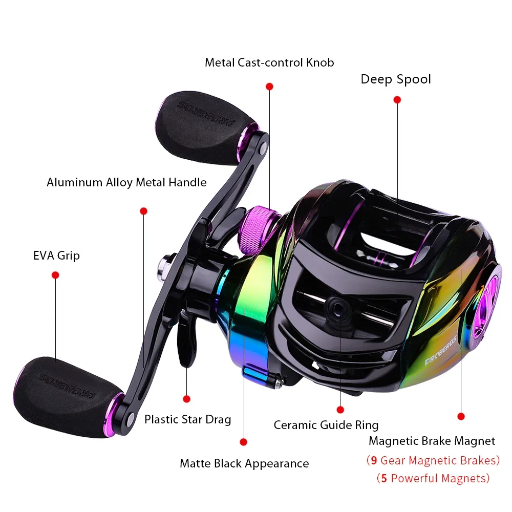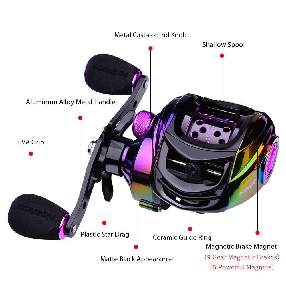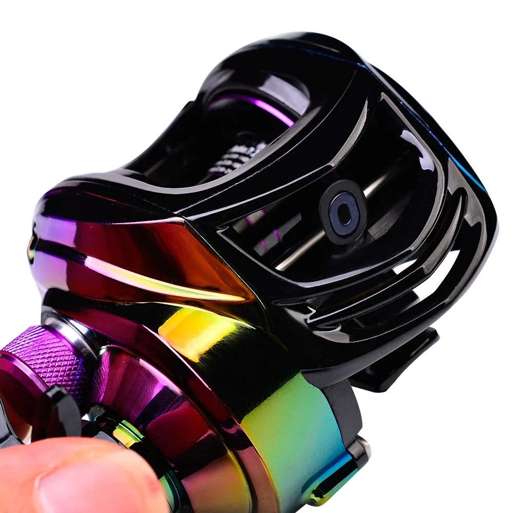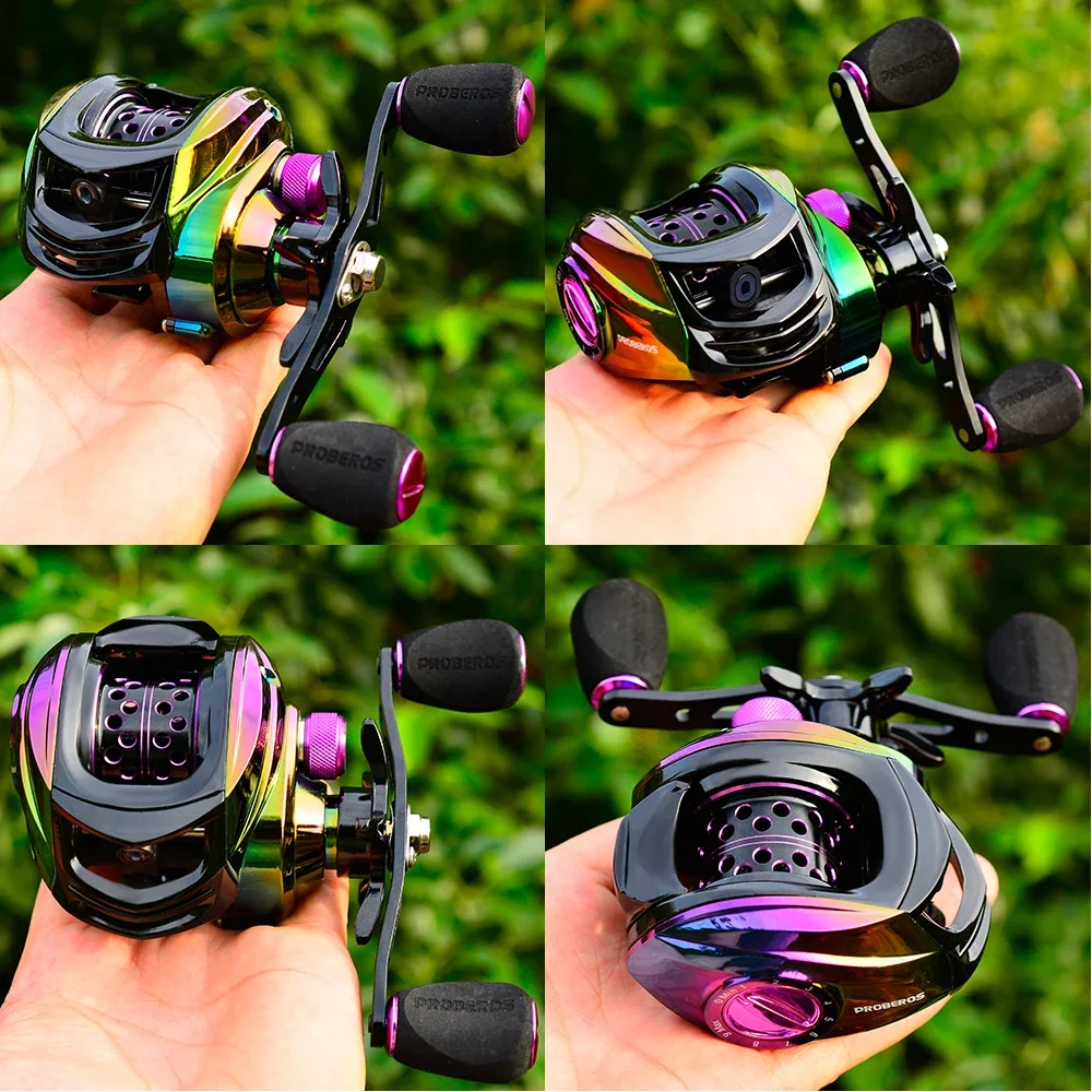 Carrete de lágrima de metal 9 + 1BB Carrete de línea de pesca con corredor de carretera galvanizado colorido Relación de engranaje: Sistema de freno magnético de 10 velocidades 7,2:1
