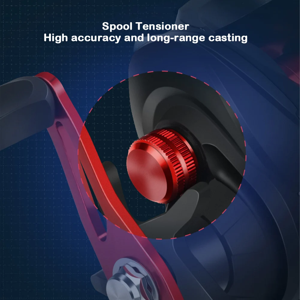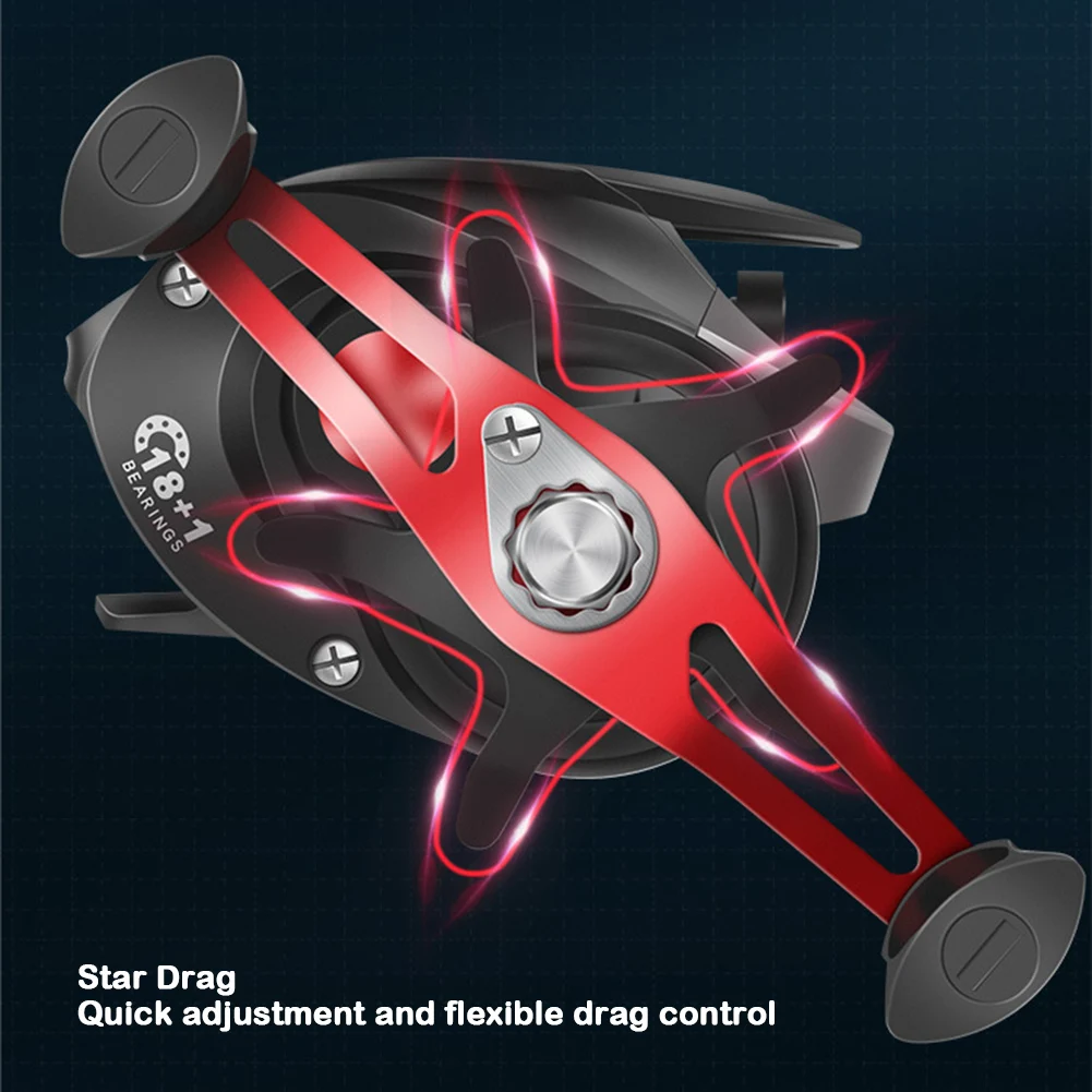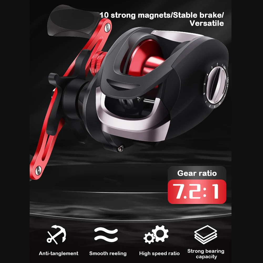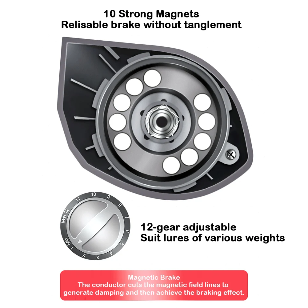 * 1. Este carrete de cebo es una herramienta de pesca de alto rendimiento diseñada para satisfacer las demandas de los principiantes y pescadores experimentados. Con un sistema de frenado magnético de 12 engranajes y un tensor de carrete finamente ajustado, reduce eficazmente el retroceso de la línea y mejora la precisión.