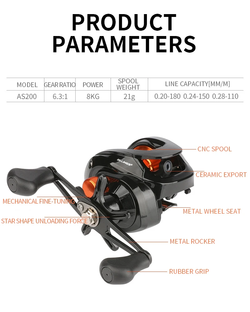 Carrete ligero de Metal para pesca, rueda de Baitcasting de alta velocidad, arrastre máximo de 8kg, relación de engranaje 6,3: 1