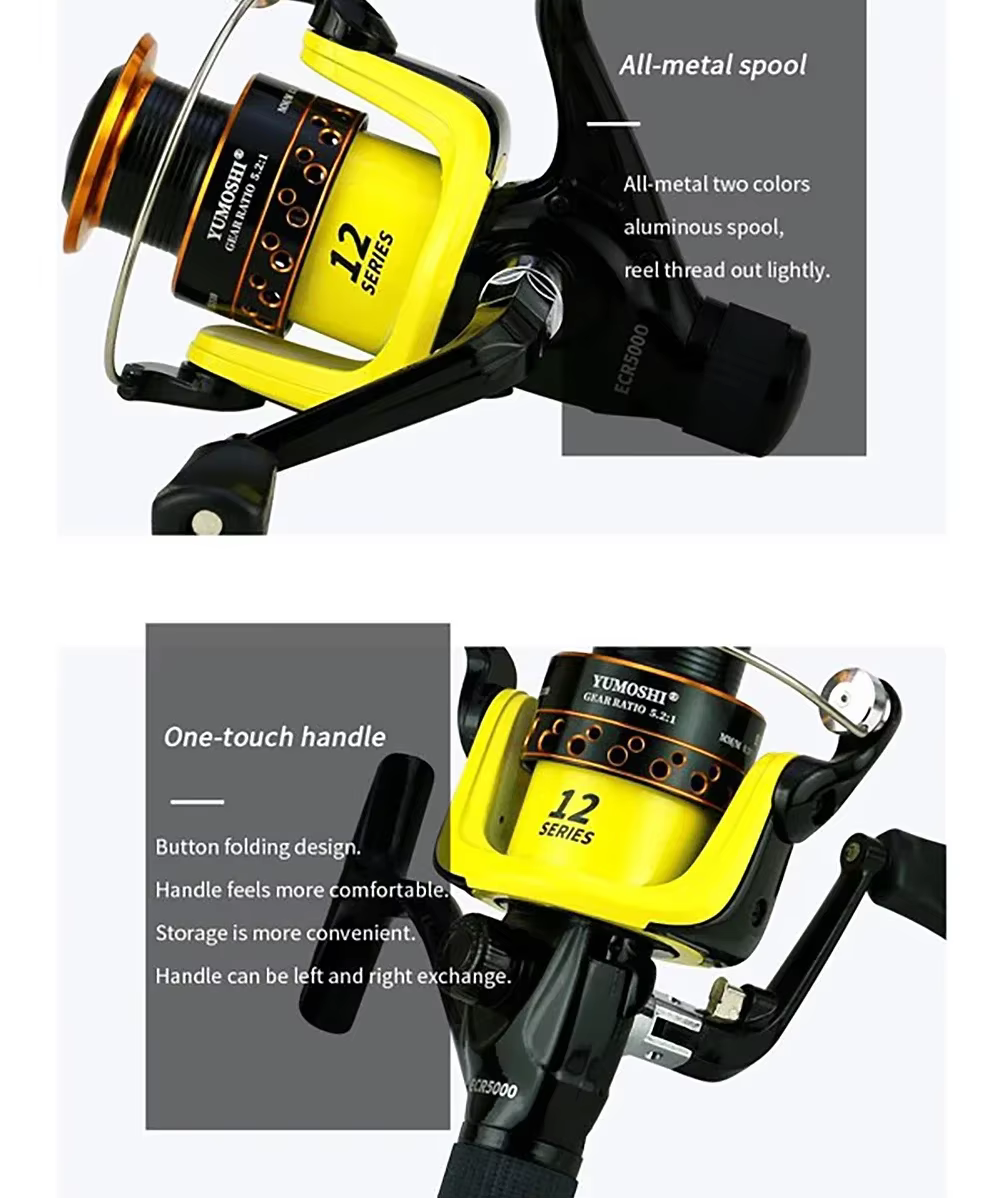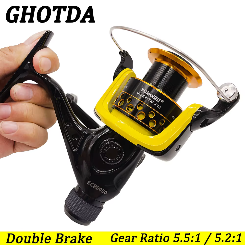 Carrete de Metal de alta calidad para pesca en agua salada, doble freno, 5,2: 1/5, 5:1, alta velocidad, 2000-7000