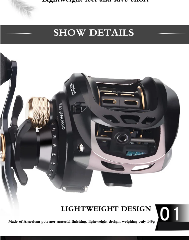 Carrete de Metal completo para Baitcasting, accesorio de 5kg de arrastre máximo 6 + 1BB, relación de engranaje 6,5: 1, cubierta lateral mecánica, carrete de pesca para mano izquierda y derecha