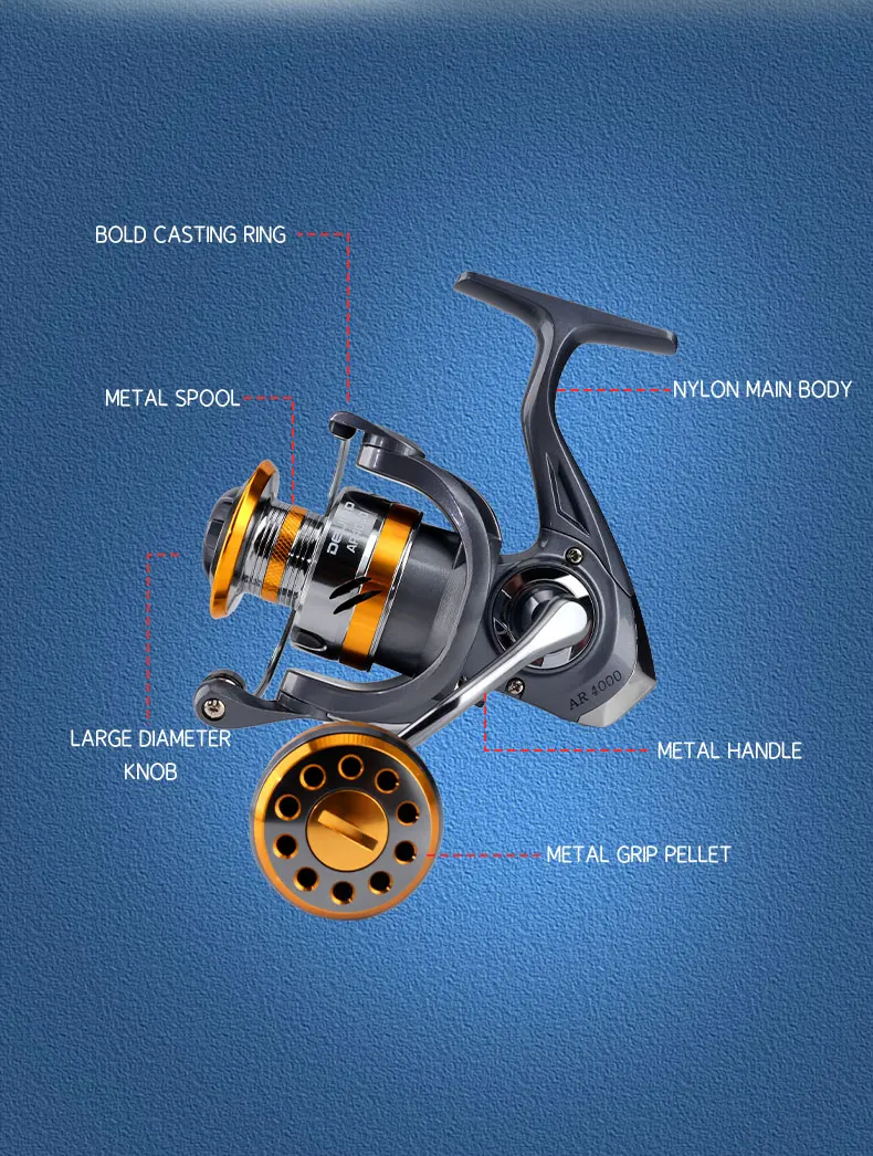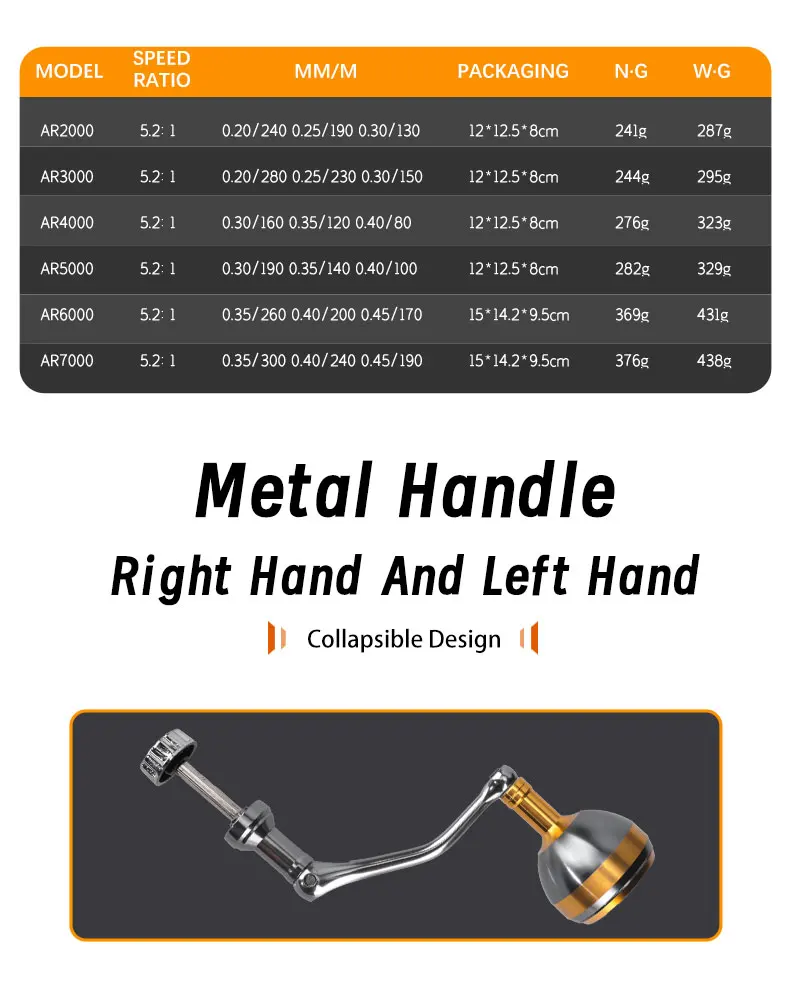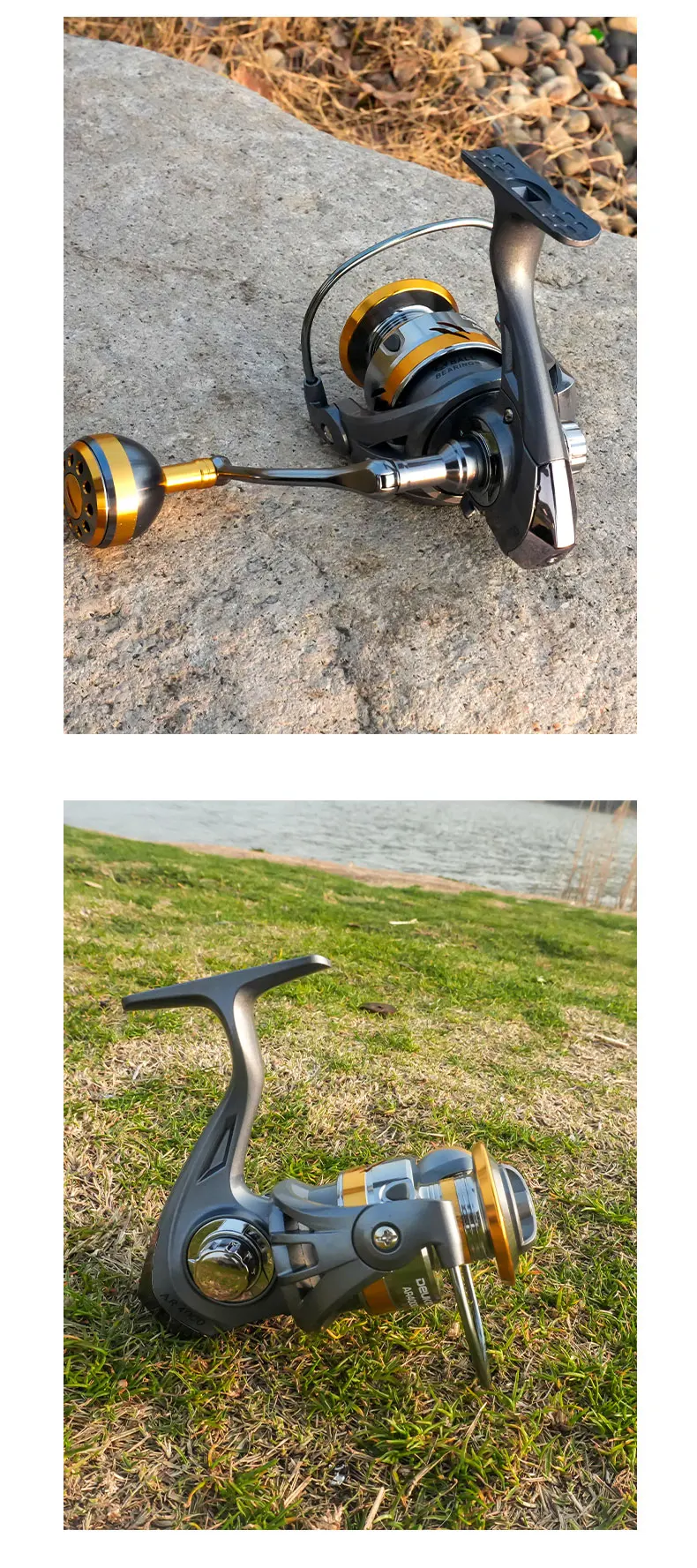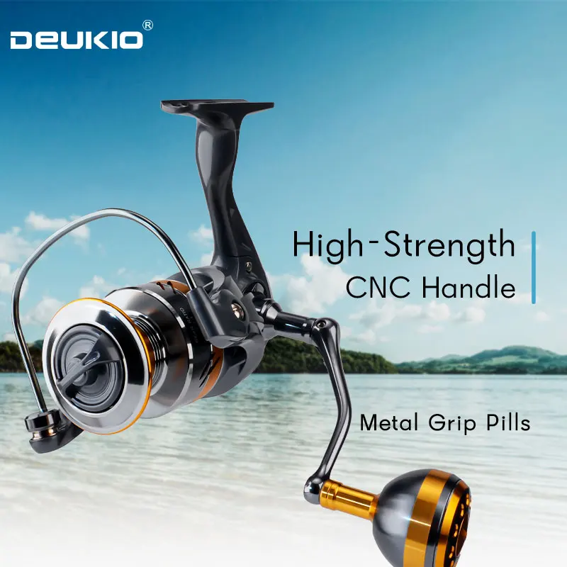 Carrete de Metal DEUKIO, carrete giratorio de pesca para rodamientos de bolas de carpa, mango de Metal, perilla, agarre, aparejos de mar para agua dulce de mar