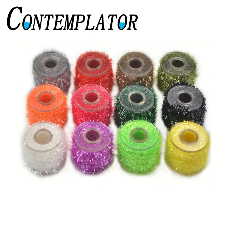 CONTEMPLATOR 12 colores opcionales Cactus Tinsel Spool Crystal Flash Yarn Ice Chenille Fly Tying Materials para Bass Pike Flies