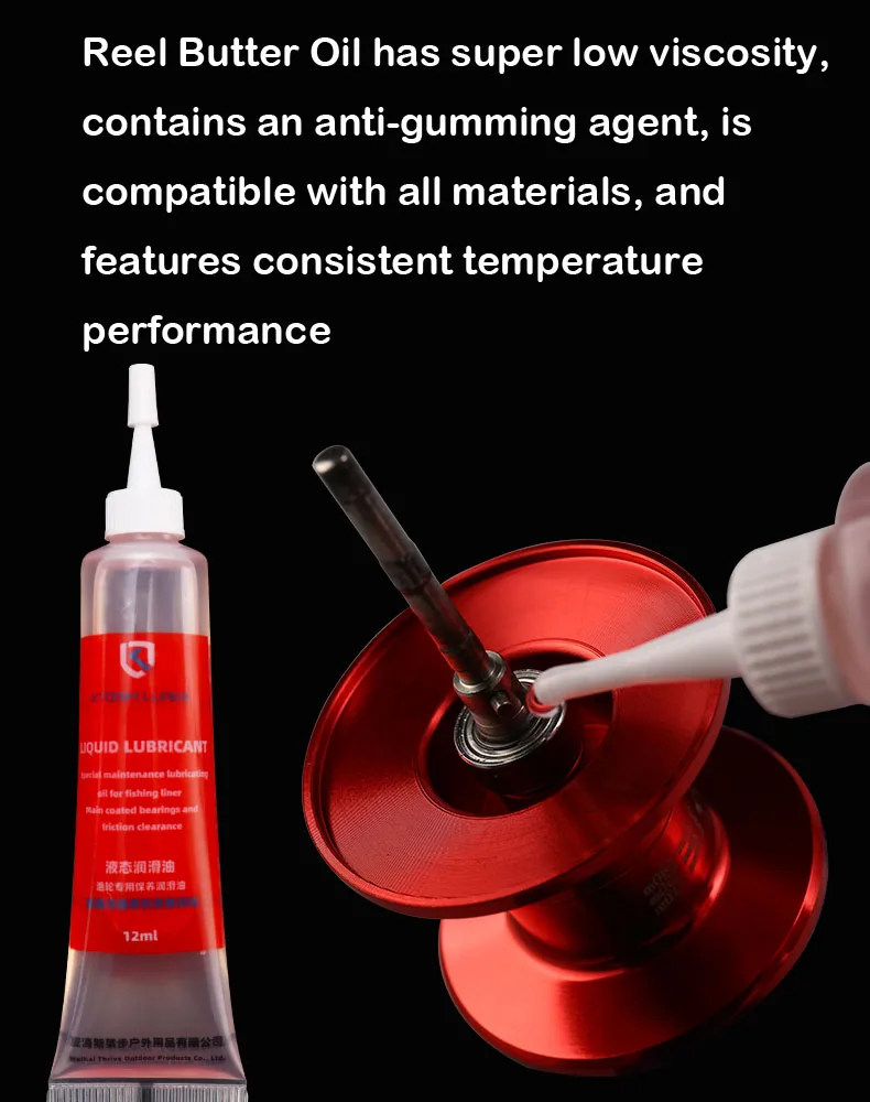 Este tipo de aceite y grasa tiene un gran efecto en la lubricación y mantiene su carrete de pesca suave.