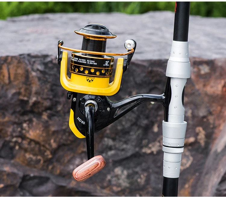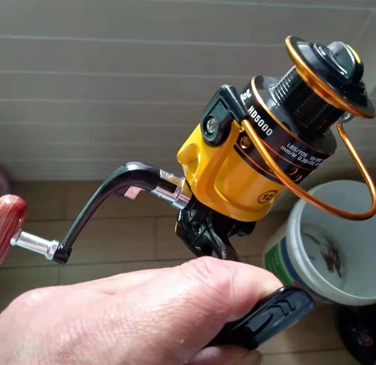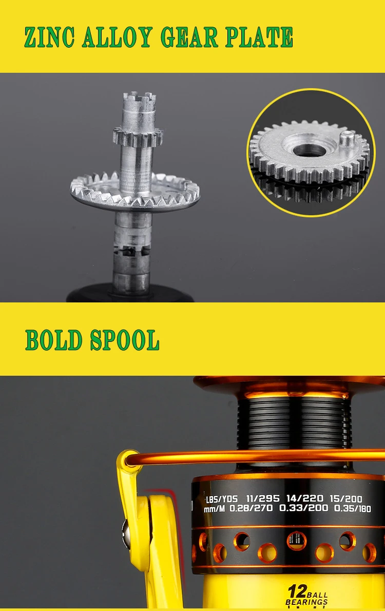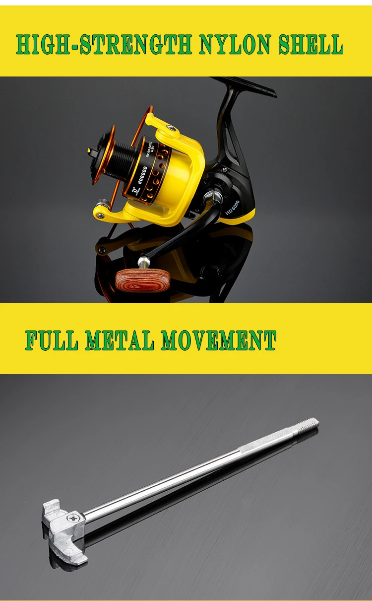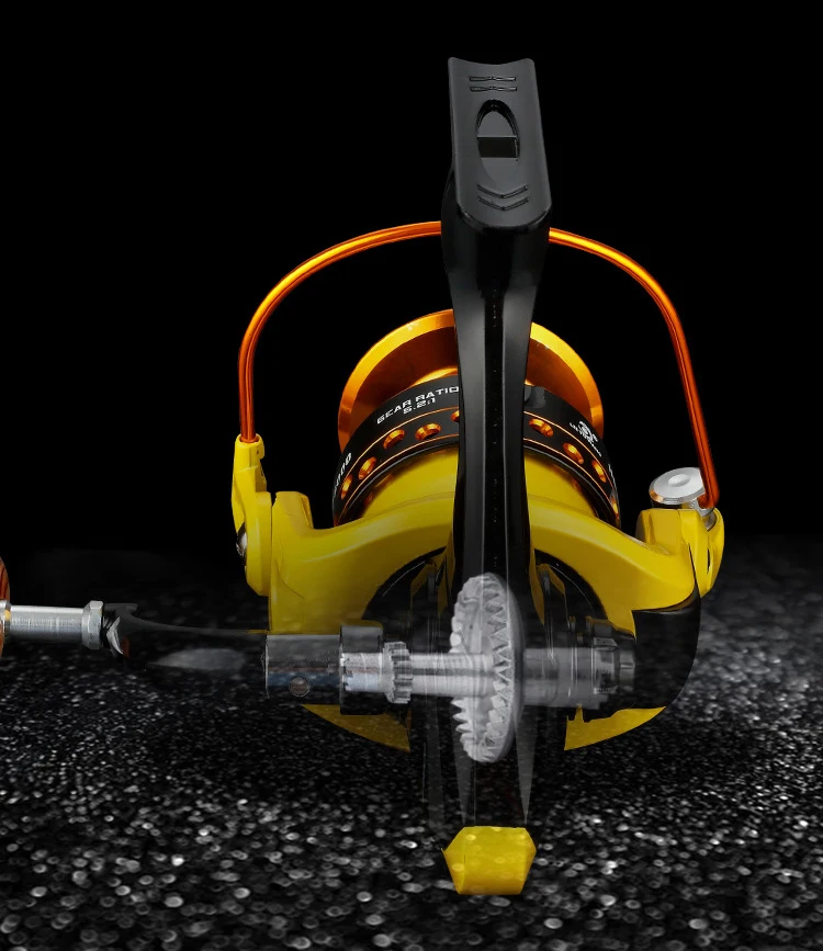 Carrete de pesca de 8kg, bobina metálica de gran arrastre, 5,2: 1, carrete giratorio de carpa amarillo