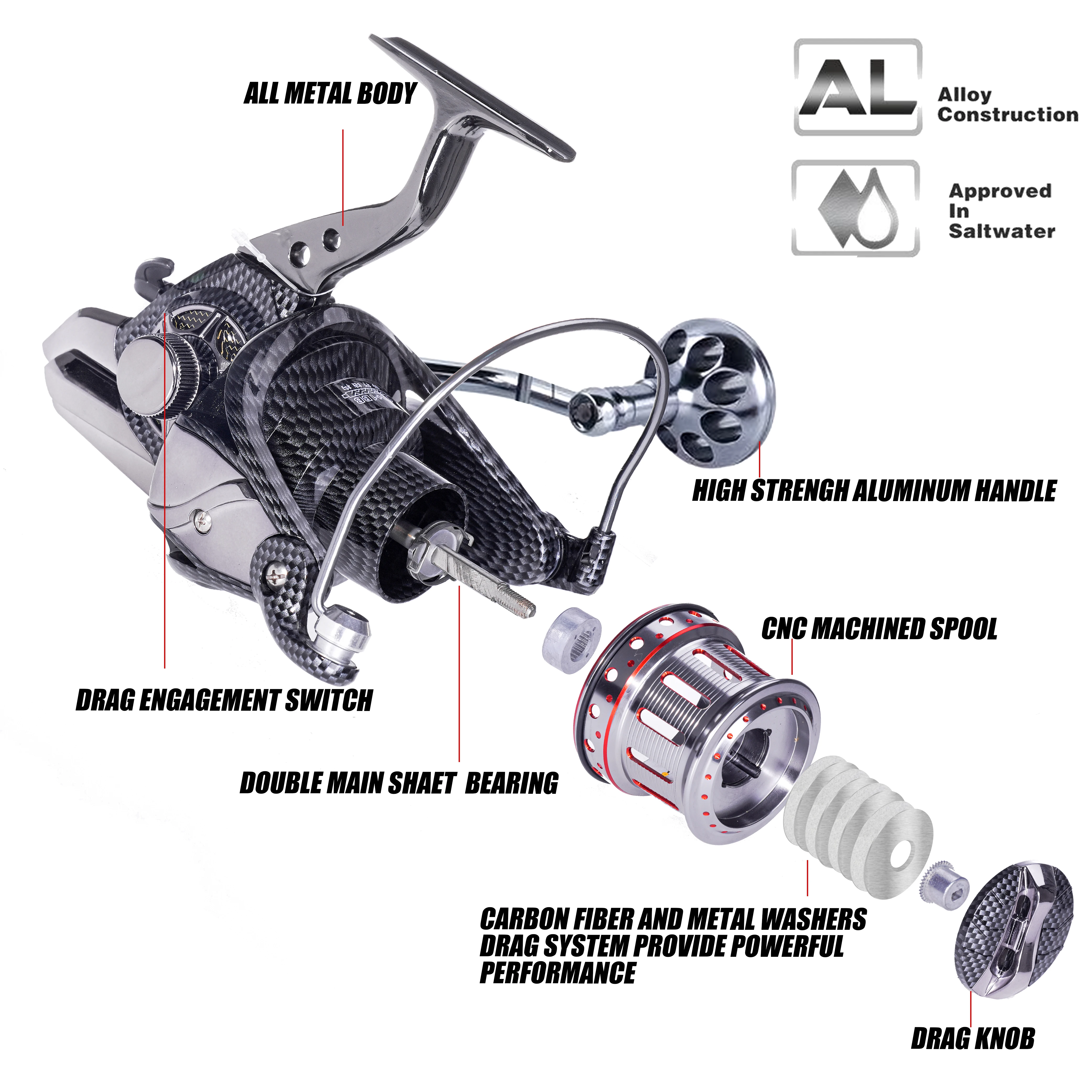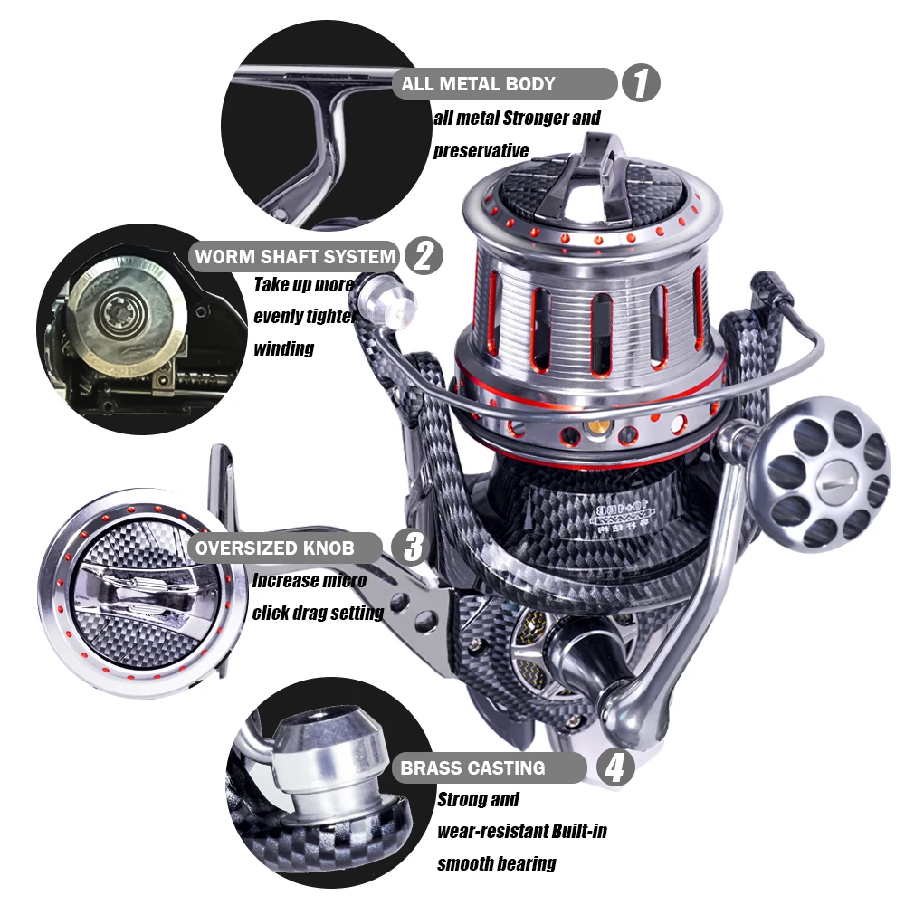 Carrete de pesca a prueba de agua de mar, rodamiento de bolas de Metal 10 + 1, arrastre de 25kg para peces grandes, carretes giratorios de carpa, Molinete, 8000-12000, nuevo