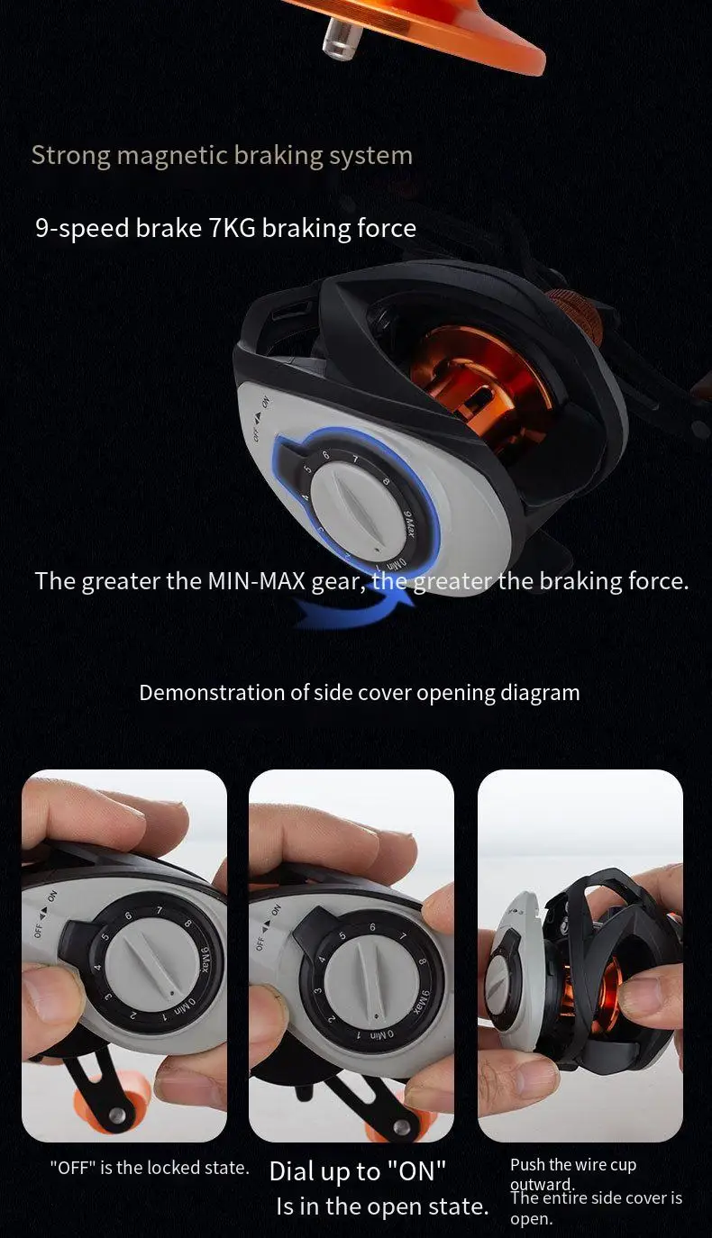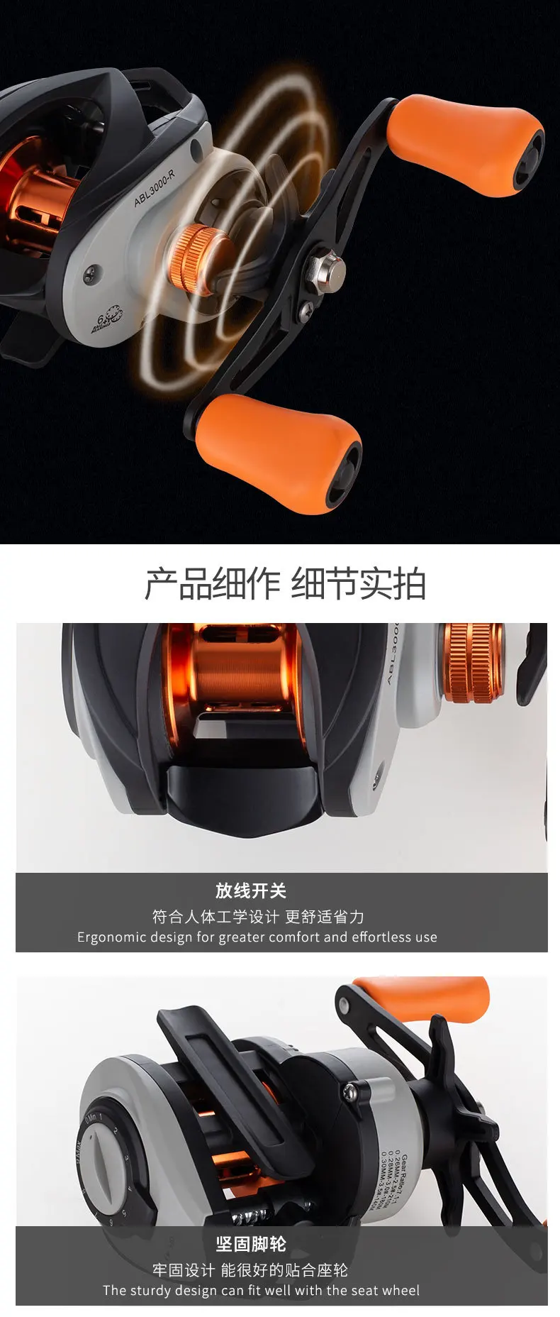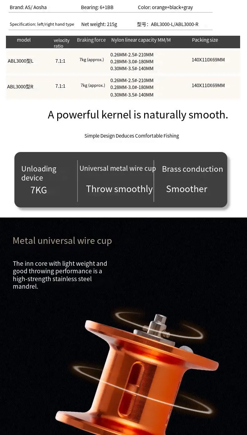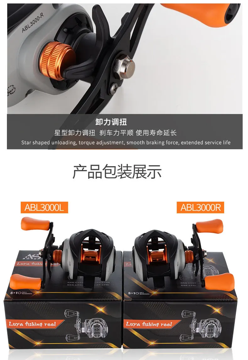 Carrete de pesca ABL3000 Baitcasting, relación de engranaje 7,1: 1, sistema de arrastre máximo de 7kg, 6 + 1BB para pesca de carpa, lubina, agua salada, trucha