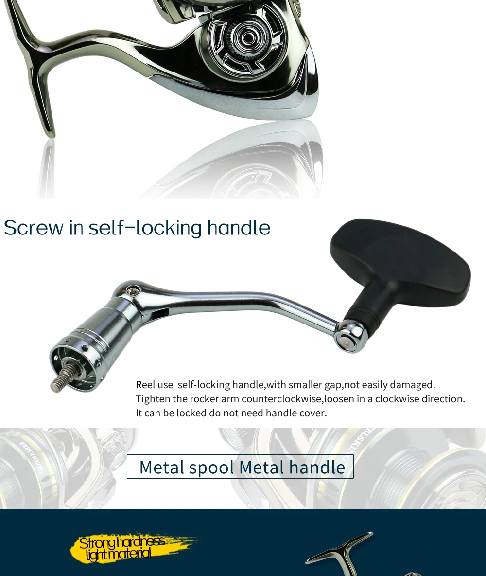 Material: carrete de metal, mango de metal, piezas internas totalmente metálicas