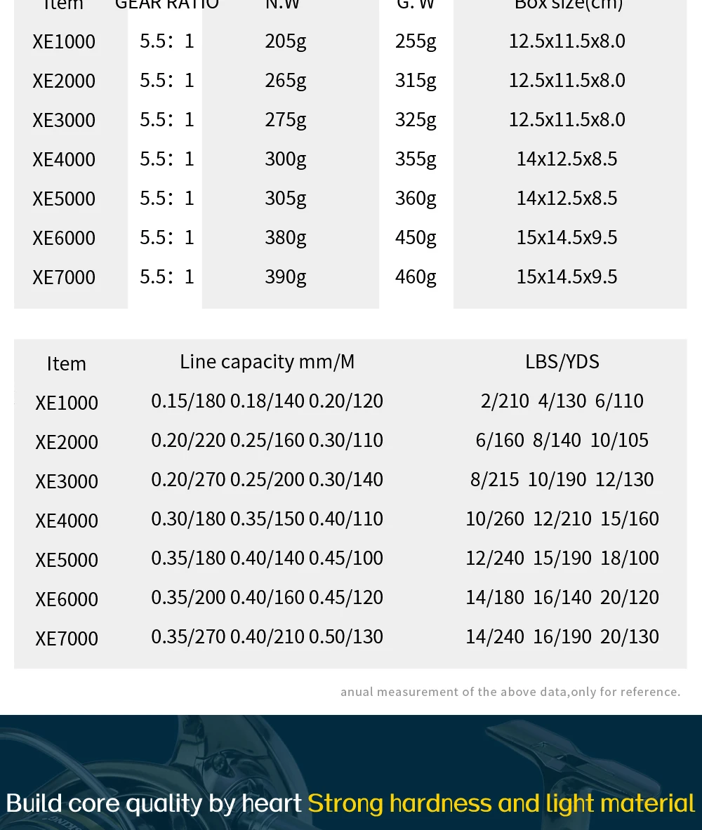 • Diseño de embrague unidireccional con una recuperación de línea 5.5:1 de alta velocidad súper silenciosa.