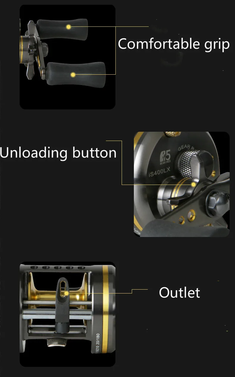 1. Engranaje de alta resistencia con sistema de arrastre de cinco estrellas, precisión y bajo ruido.2,1 rodamiento de bolas rodamiento de embrague unidireccional, relación de engranaje 5,1: 13. Mango doble equilibrado con cebo de encendido/apagado.4. Excelente sistema de oscilación de línea. Herramienta perfecta para la pesca en el mar.Especificaciones: