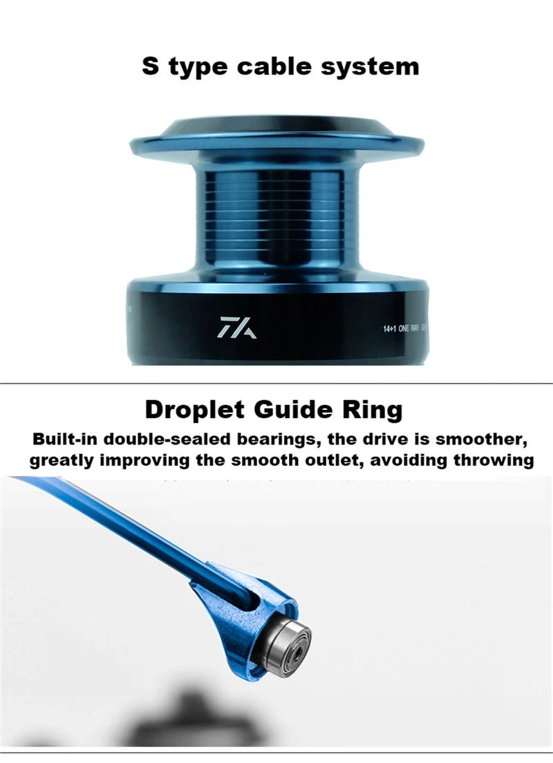+ Carrete giratorio resistente a la corrosión, suave y potente.Mecanizado CNC, con engranaje de alta resistencia.Excelente sistema de oscilación de línea.Cuerpo de diseño aerodinámico ultrafino.