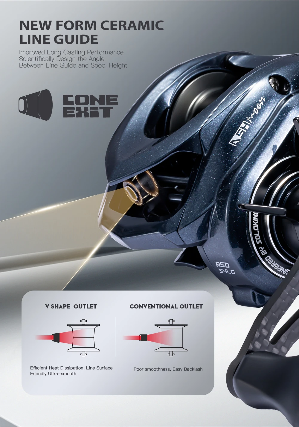 Carrete de lanzamiento de aleación de ASHMOON SOLUCCIÓN: modelo de mango largo