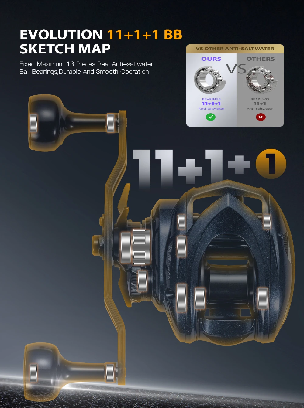 7. 【Rodamiento de bolas de acero inoxidable 12+1】 Instale el rodamiento de bolas en cada lugar y use un rodamiento de bolas de agua salada de alta calidad, para que el pescador lo use en todos los entornos acuáticos.