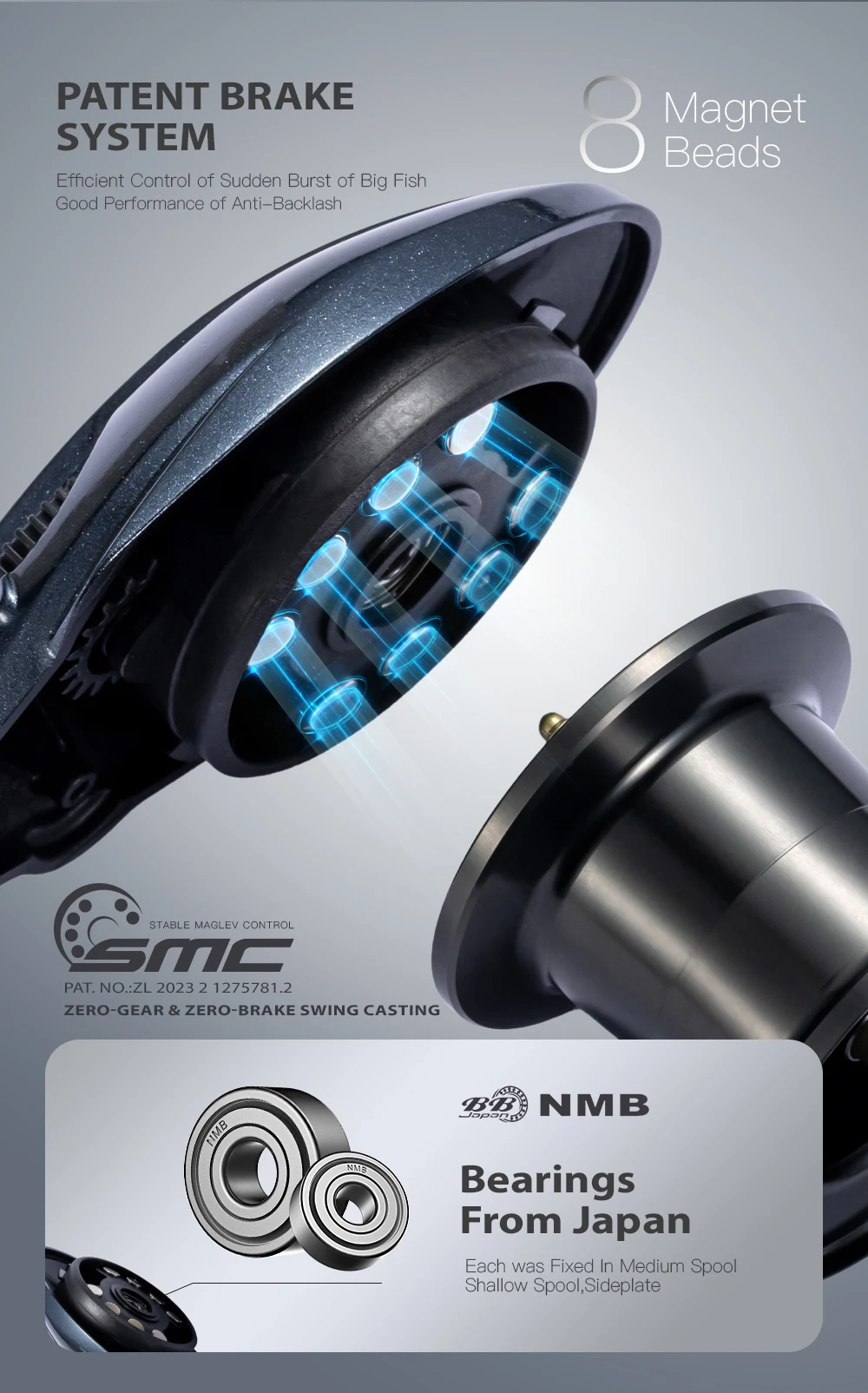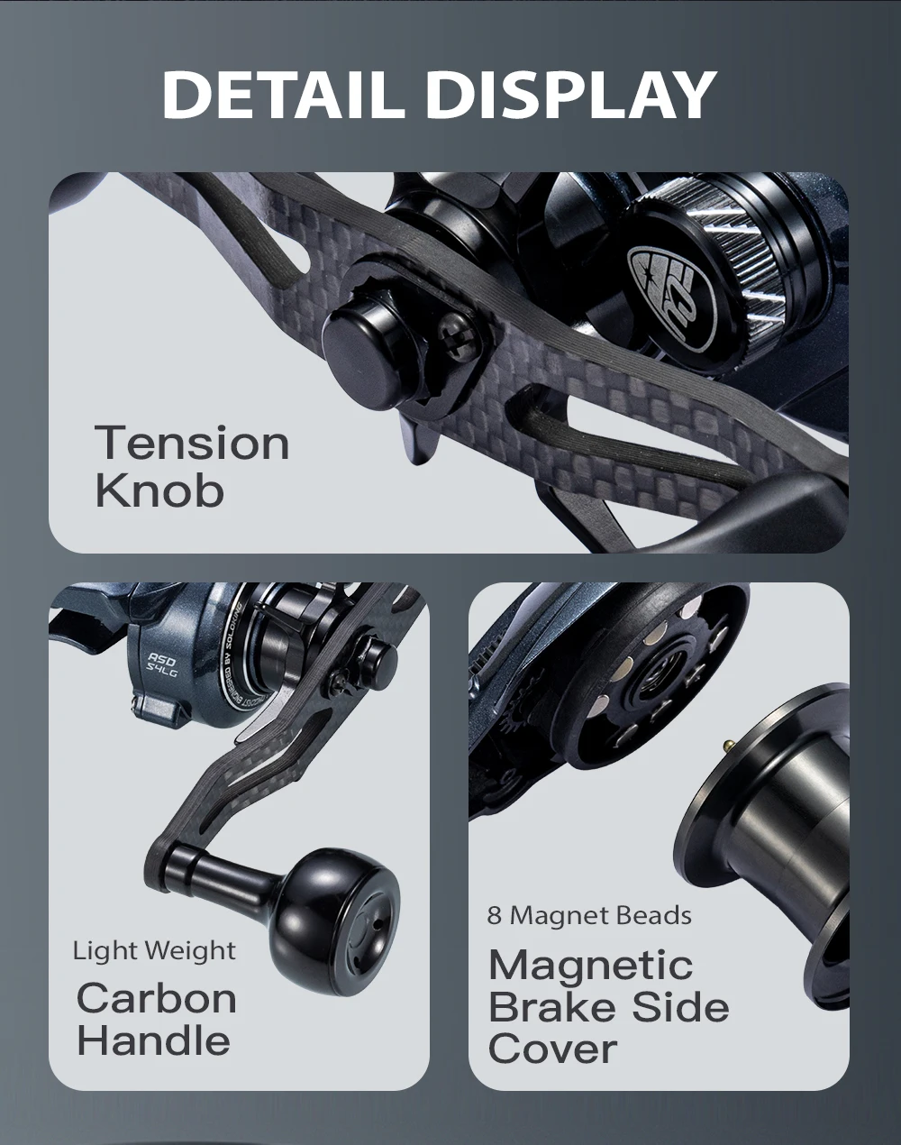 7.1/8.1La relación de transmisión de alta velocidad es buena para la pesca del lubina y la búsqueda de una gran área de agua.