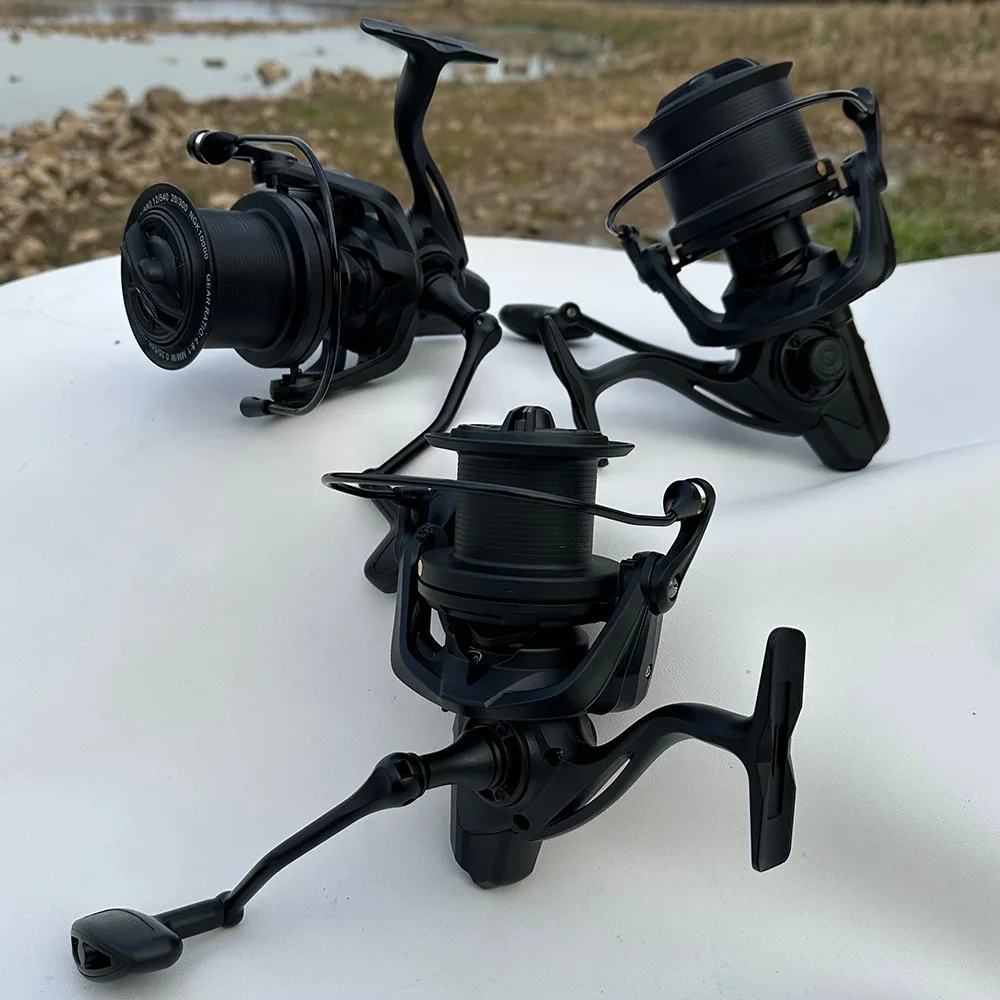 Carrete de pesca giratorio para juegos grandes, carrete de Metal antialgua salada