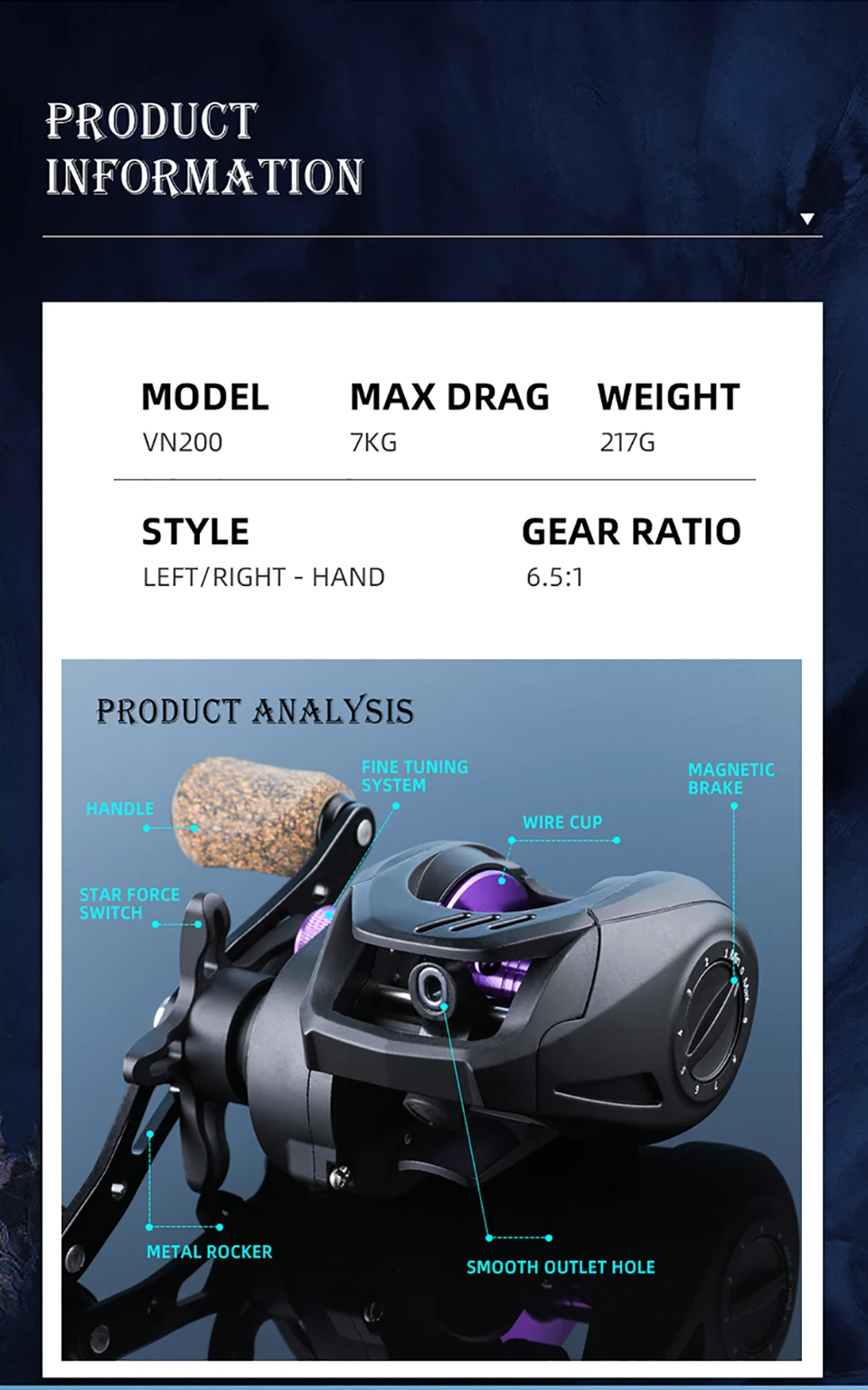para controlar la velocidad del carrete de pesca.