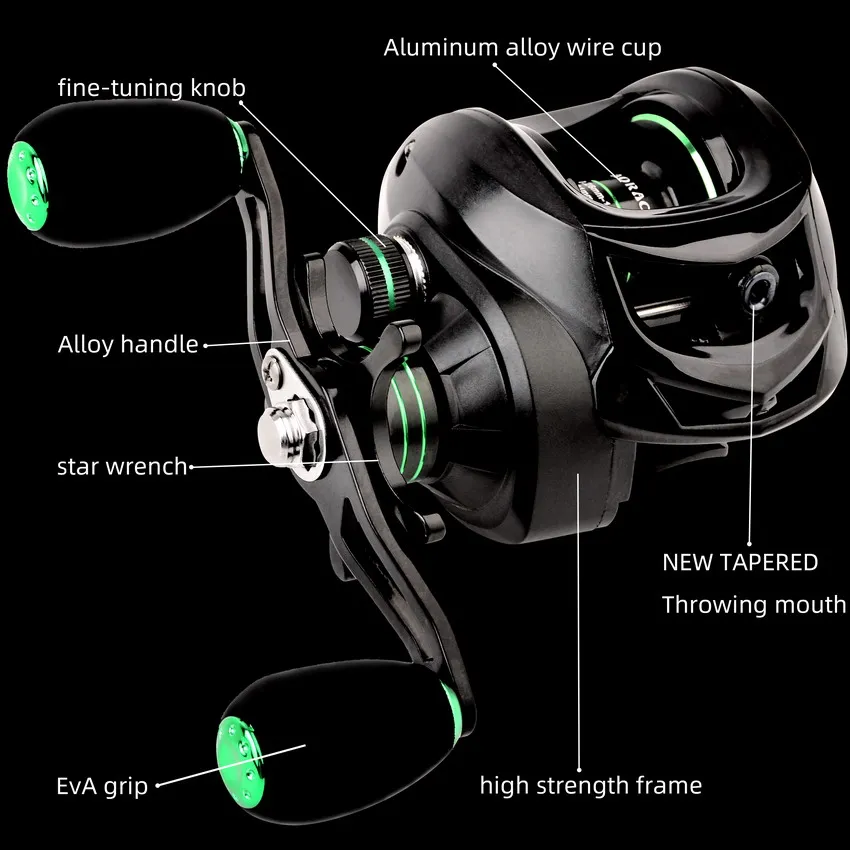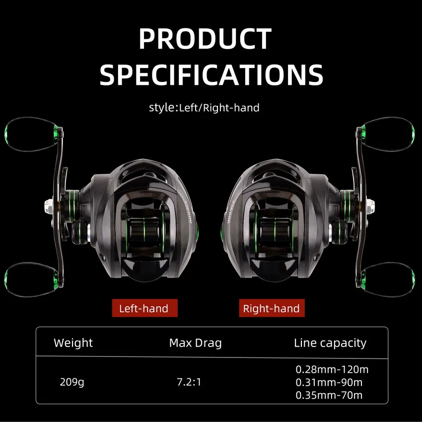 Carrete de pesca de arrastre Baitcasting máximo de 8KG, relación de velocidad 7,2: 1, freno magnético de alta velocidad, rueda de pesca de fundición