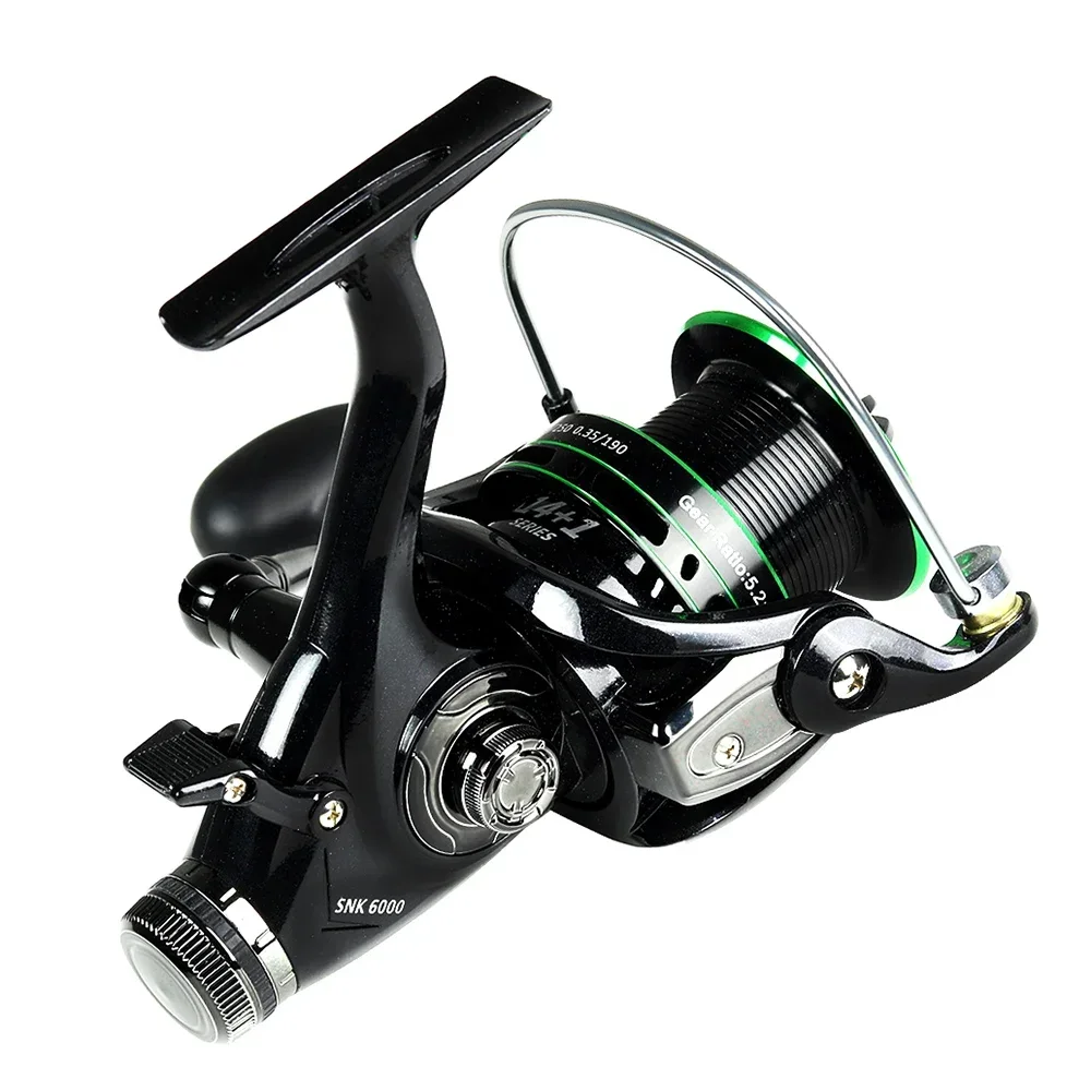 Utiliza carrete de aleación de aluminio tallado fino de alta dureza, resistencia y material ligero. Una línea de salida suave hace que el tiro sea más largo.