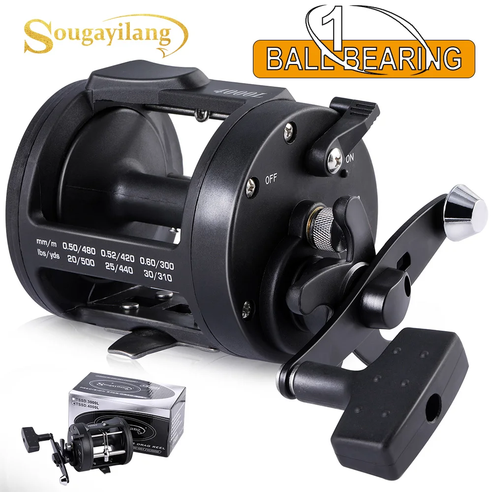 Carrete de Pesca de arrastre Sougayilang Baitcasting, carretes de Pesca de mano izquierda/derecha 1BB, carrete de Pesca de tambor de arrastre máximo 28kg