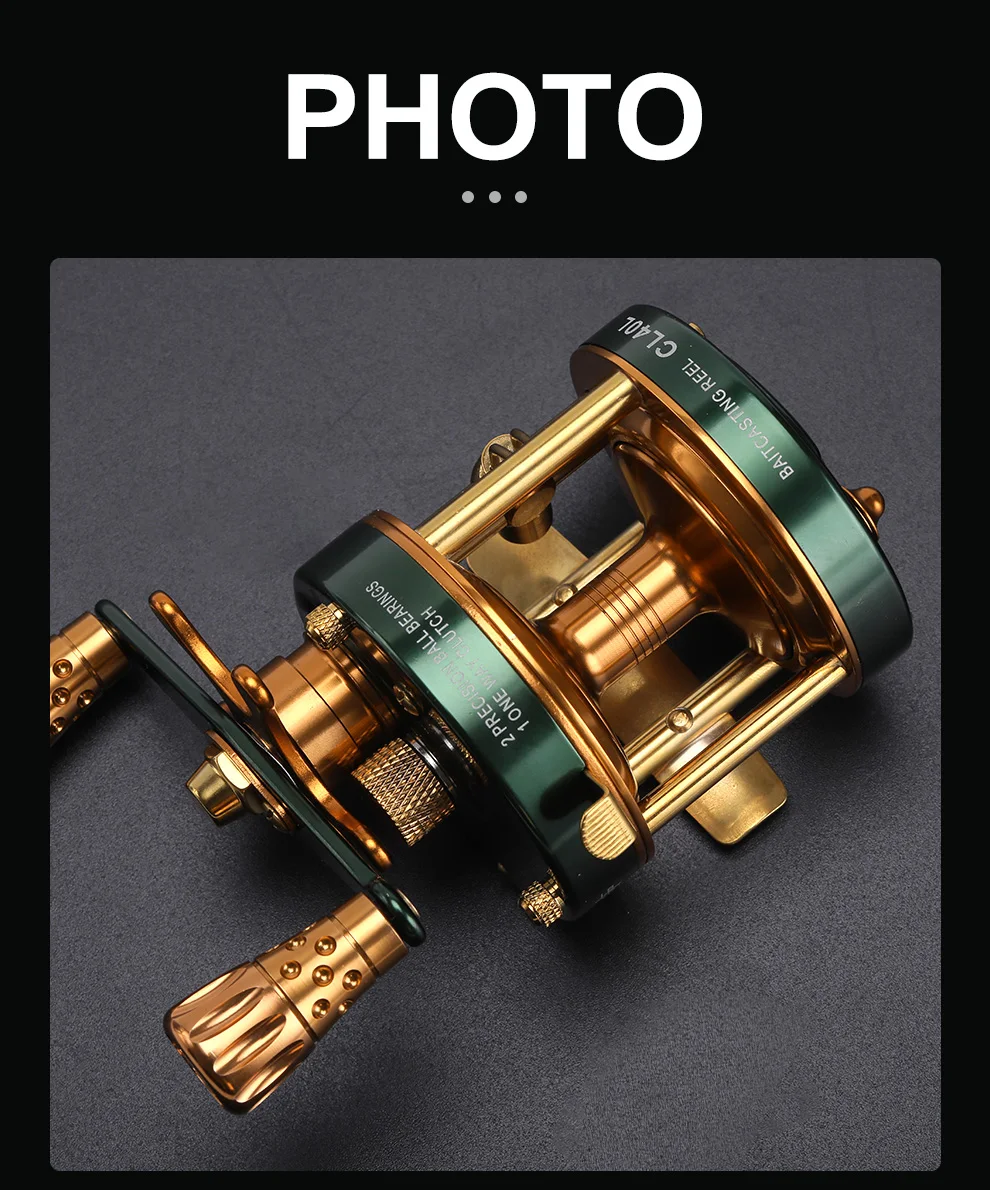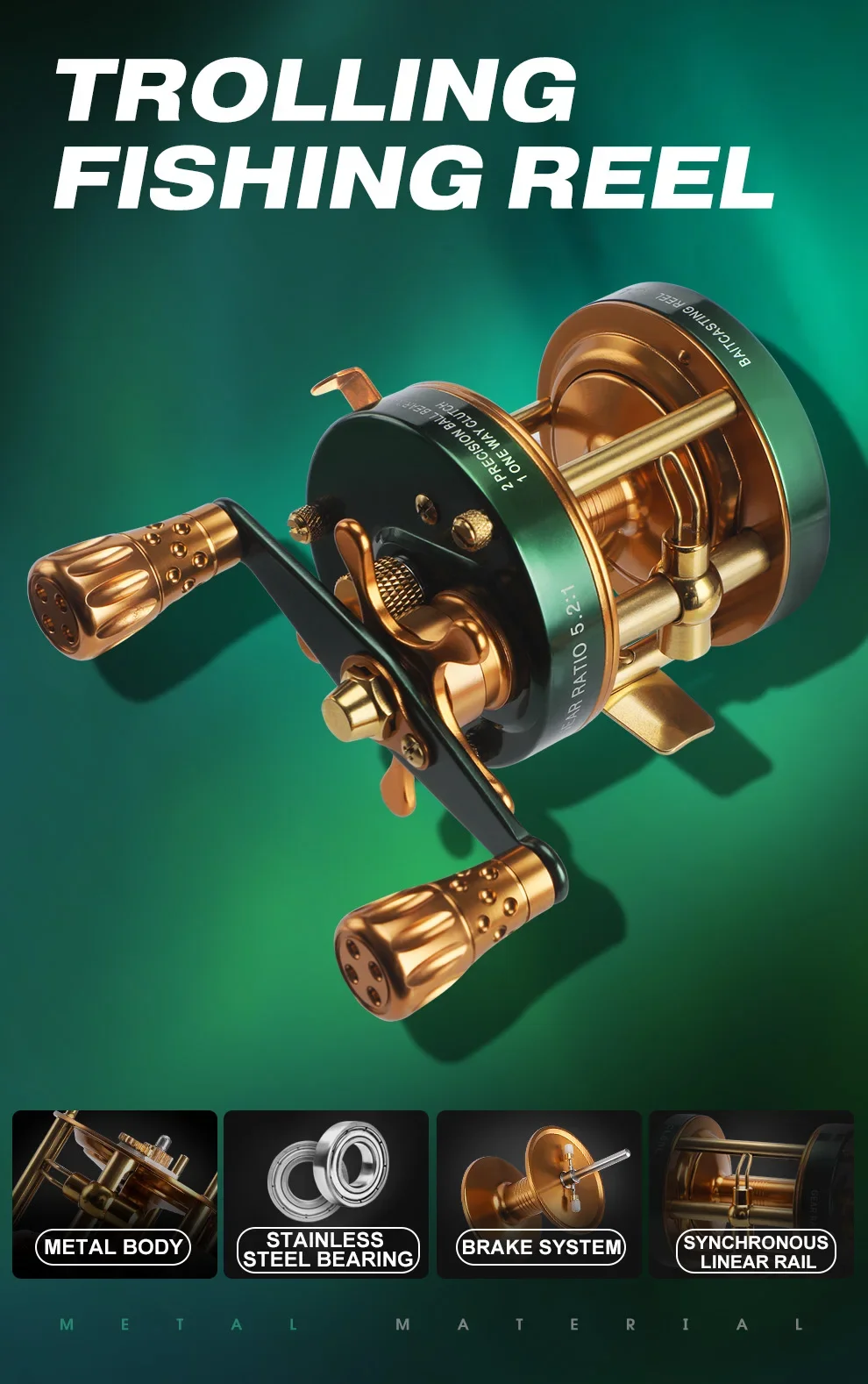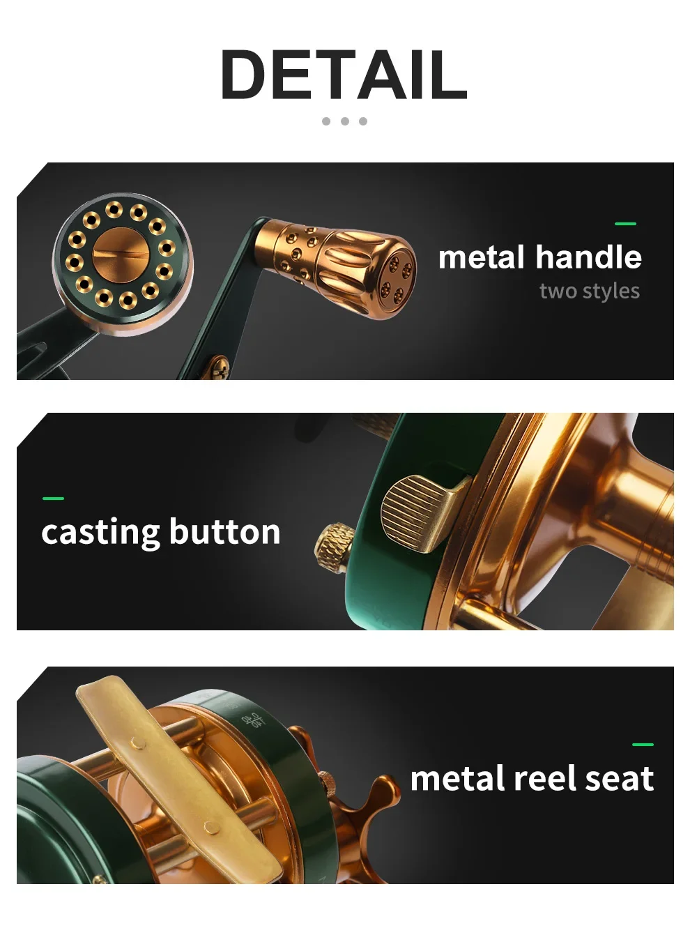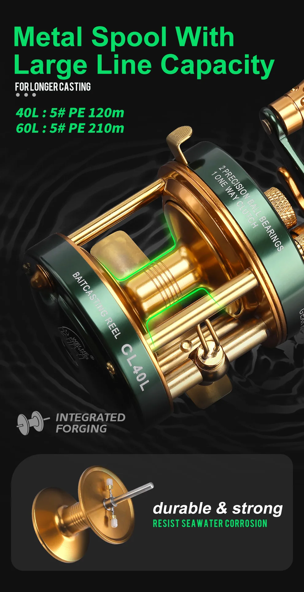 Carrete de pesca de arrastre verde Retro 40L60L, tambores de placa de hierro de roca lenta para pescar en barco offshore negro