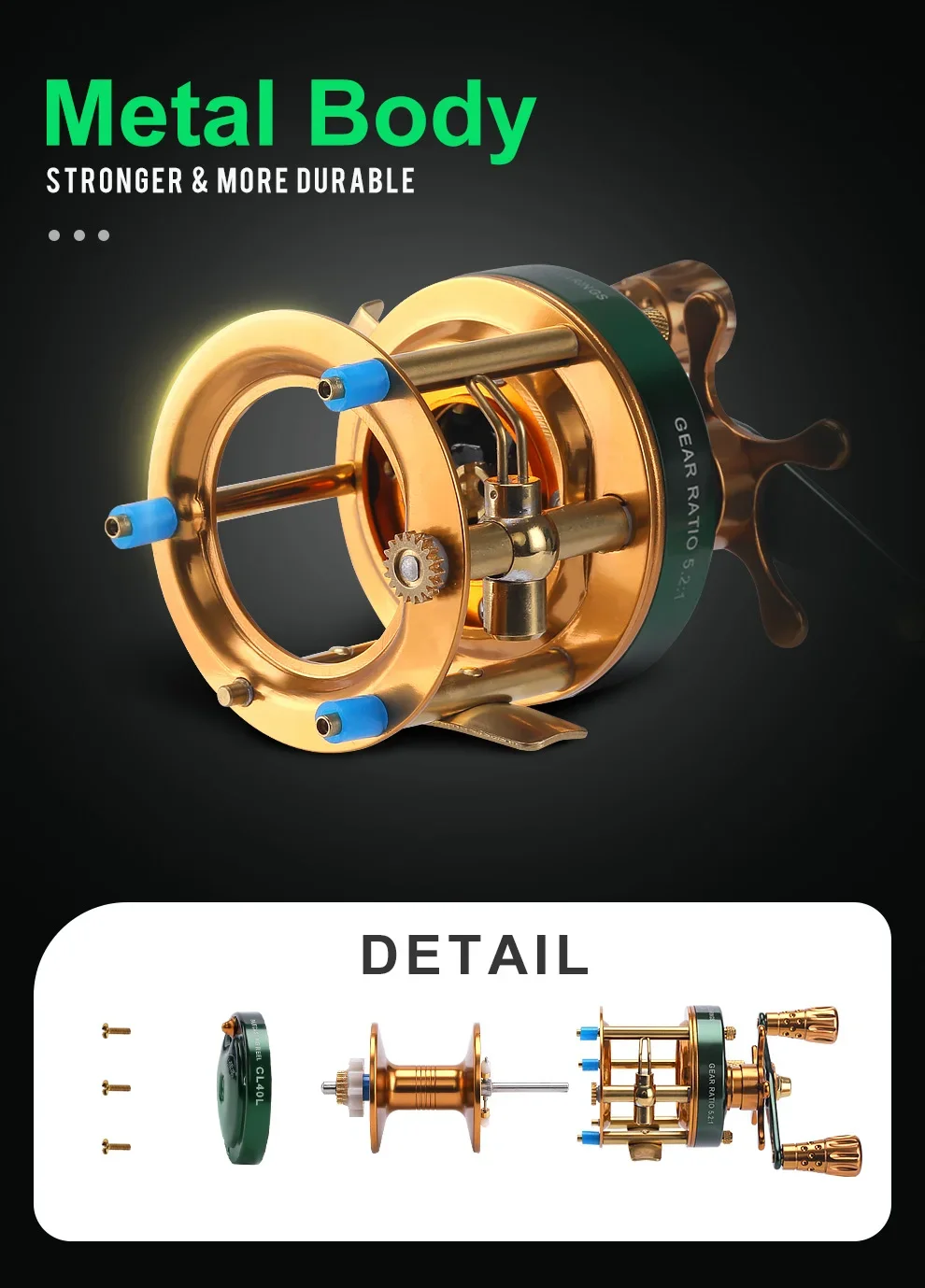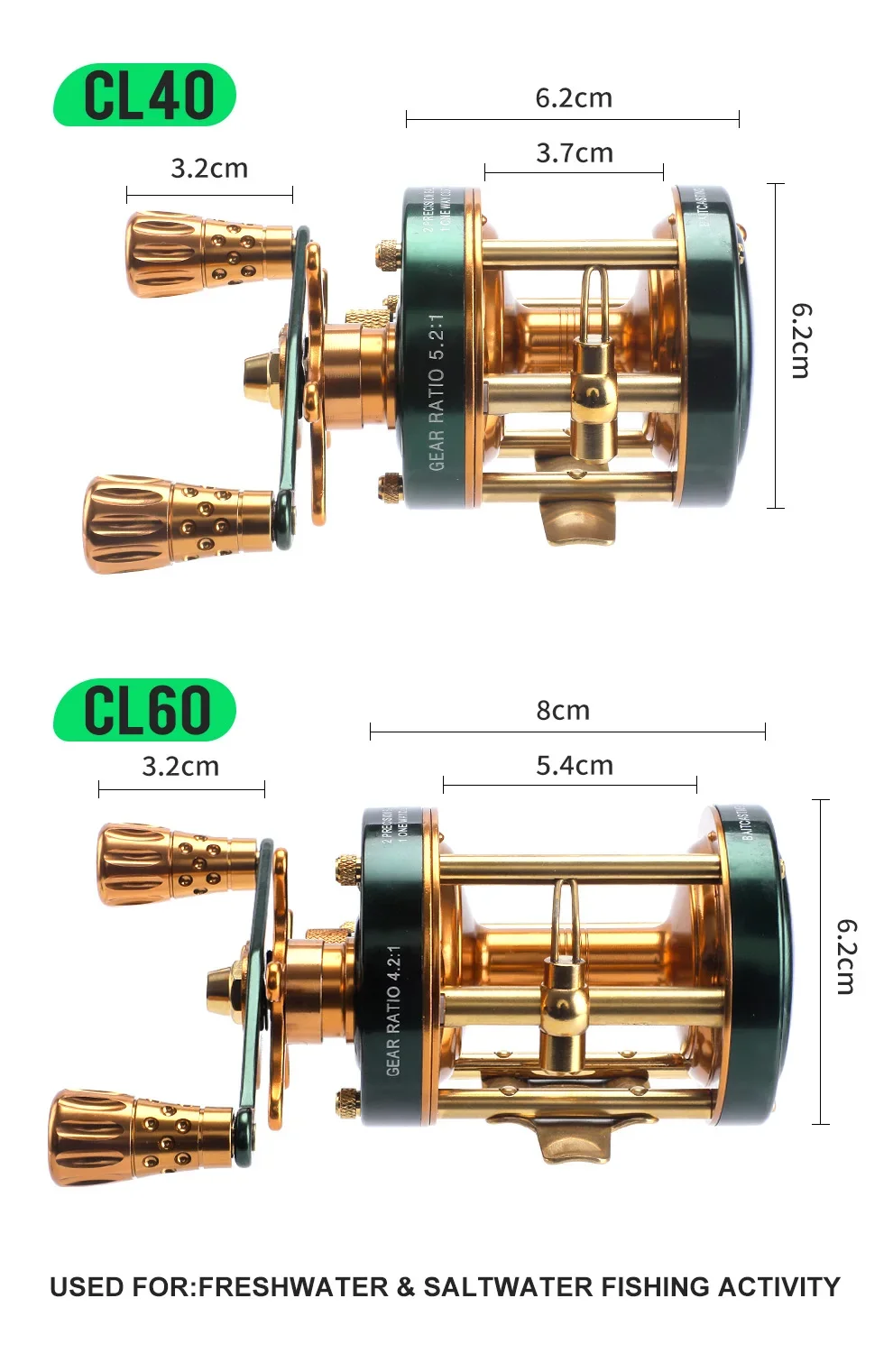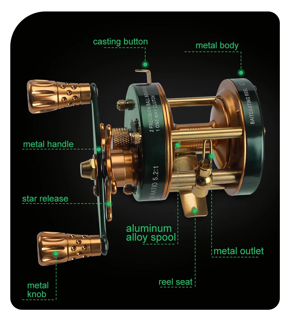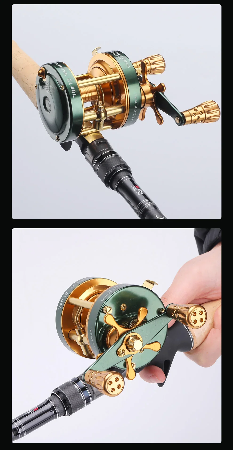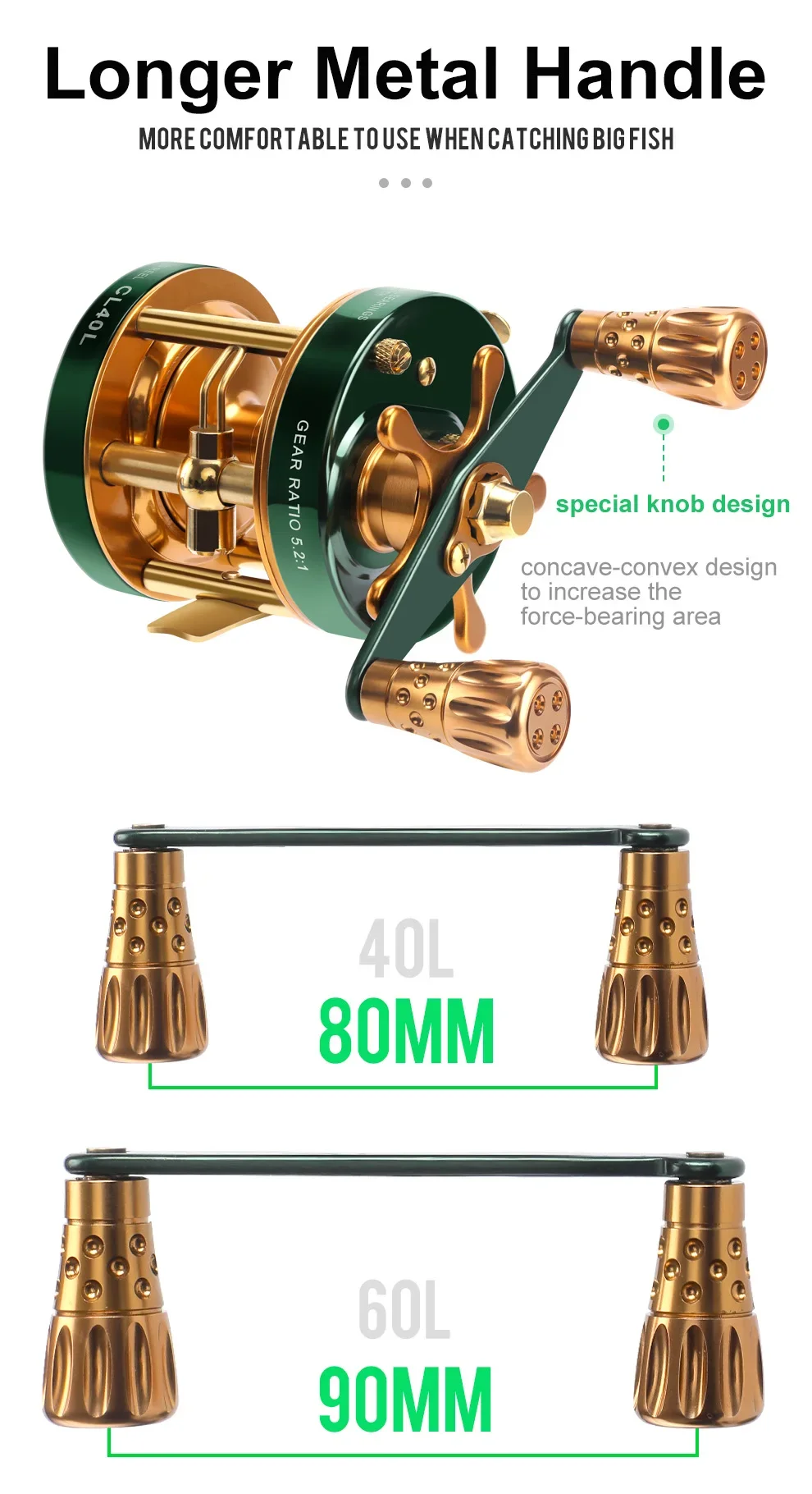 Carrete de pesca de arrastre verde Retro 40L60L, tambores de placa de hierro de roca lenta para pescar en barco offshore negro